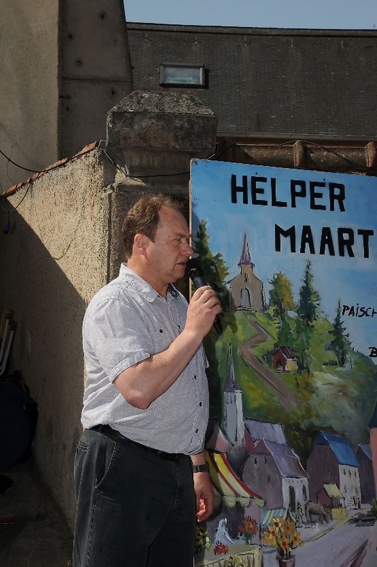 Am Fuße des „ Hëlpert“ gelegen zeigt sich das Dörfchen Buschdorf mit seinem ländlichen Charakter auch bestens geeignet, um eine angenehme Marktatmosphäre zu bieten. Seit seiner Wiedergeburt im Jahre 1989 ist dem „ Hëlpermaart“ am Pfingstsonntag ein von Jahr zu Jahr größerer Erfolg beschieden. Das herrliche Frühlingswetter hatte bereits am Vormittag zahlreiche Prominente, Politiker, Vereinsvertreter und Besucher gelockt, um der Eröffnungsfeier des 26. „Hëlpermaart“ beizuwohnen, die von der „ Piazza- Band „ musikalisch umrahmt wurde.