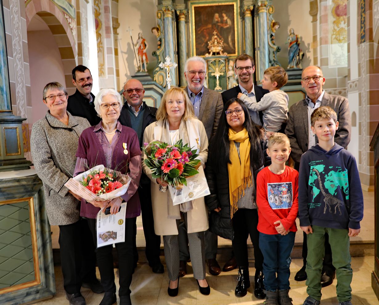 Traditionsgemäß wurde am letzten Sonntag in der neuen Pfarrei Äischdall-Helpert Saint Willibrord die Heilige Caecilia mit einem beschaulichen Festgottesdienst in der restaurierten Dorfkirche in Buschdorf gefeiert. Die kleine Festlichkeit war Anlass zu einem gemeinsamen Treffen von zahlreichen Sängern und Musikanten aus Buschdorf, Boewingen, Brouch, Tüntingen und Saeul. Die Heilige Caecilia soll im 3. Jahrhundert in Rom gelebt haben und gilt der Legende nach als Märtyrerin. Sie wird als Nothelferin verehrt und ist Schutzpatronin der Kirchenmusik und als solche natürlich für alle Kirchenchöre und Musikkapellen von besonderer Bedeutung. Im Anschluss an den von Pfarrer Joël Santer und Diakon Jos Halsdorf zelebrierten Gottesdienst betonte Chor-Sekretär Ferd Gloesener in einer kurzen Ansprache, dass der im Jahre 1895 gegründete Gesangverein trotz der erlebten Höhen und Tiefen nicht stehen bleiben dürfe und dass nur der Zusammenhalt einen Chor weiter bestehen lässt. Alsdann wurden zwei verdienstvolle Sängerinnen besonders geehrt. 30 Jahre waren Virginie Diogo-Nerden und Carmen Dühr-Cler im Vereinsleben des Caecilien-Chores aus Buschdorf aktiv. „Somit waren die beiden mehr als drei Jahrzehnte ehrenamtlich für den Gesangverein mit viel Engagement, Begeisterung und unermüdlichem Einsatz tätig, insbesondere bei Messen, Proben und anderer Veranstaltungen“ hielt der Sekretär fest. Als Anerkennung ihrer loyalen Verdienste für Verein und Mitbürger überreichte Schöffe Claude Mathekowitsch den beiden Damen die Goldmedaille des Pius-Verbandes und die dazu gehörenden Urkunden.