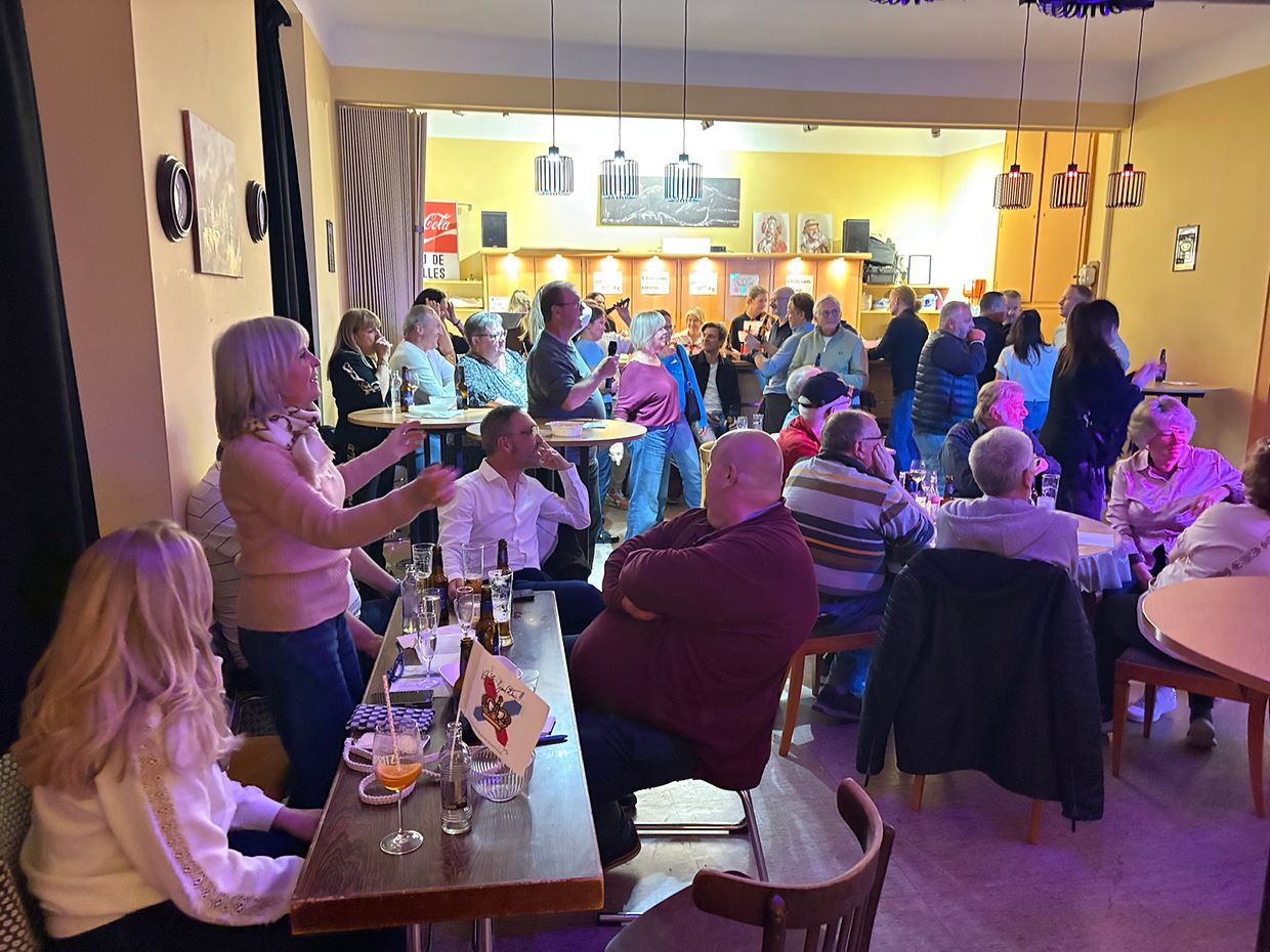 Der aus dem Japanischen stammende Begriff „Karaoke“ setzt sich aus den Wörtern „kara“ (leer) und „okesutora“ (Orchester) zusammen und bedeutet somit „leeres Orchester“. Das ergibt Sinn, oder? Zur Auswahl standen Pop, Rock, Schlager und Oldies. Mit Klassikern wie „Skandal im Sperrbezirk” (Spider Murphy Gang), „Sweet Caroline” (Neil Diamond) oder „Cordula Grün” (Josh) zeigten die Sängerinnen und Sänger ihr Können – und das Publikum sang begeistert mit. Selbst die Damen hinter der Theke ließen sich anstecken und stimmten fröhlich ein, zur großen Freude der Gäste. Perfektion war an diesem Abend Nebensache, denn was zählte, war der Spaß. Jeder Auftritt wurde mit Applaus belohnt. Für besondere Höhepunkte sorgten Schöffe Menni Hermann mit „Pour un flirt avec toi” von Michel Delpech sowie der dienstälteste Gemeinderat Mupp Gillen, der den Saal schließlich zum Beben brachte, als er „Tage wie diese” von den Toten Hosen sang.