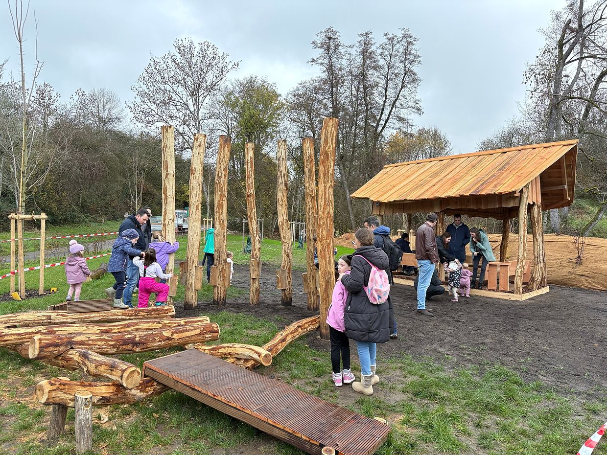 Zur Eröffnung kamen zahlreiche Gäste, darunter viele Kinder, die das Gelände sofort neugierig erkundeten. Die Spielgeräte laden zum Klettern und Balancieren ein und fördern den Gleichgewichtssinn. So ist ein Ort entstanden, an dem sich Kinder austoben können, an dem Familien zusammenkommen und an dem Natur unmittelbar erlebbar wird. Beim abschließenden Umtrunk wurde angestoßen, geplaudert und das gemeinsame Projekt gefeiert. Ein kleines Präsent – ein Teddy mit Decke – sorgte bei den Kindern für leuchtende Augen und rundete den Nachmittag stimmungsvoll ab.