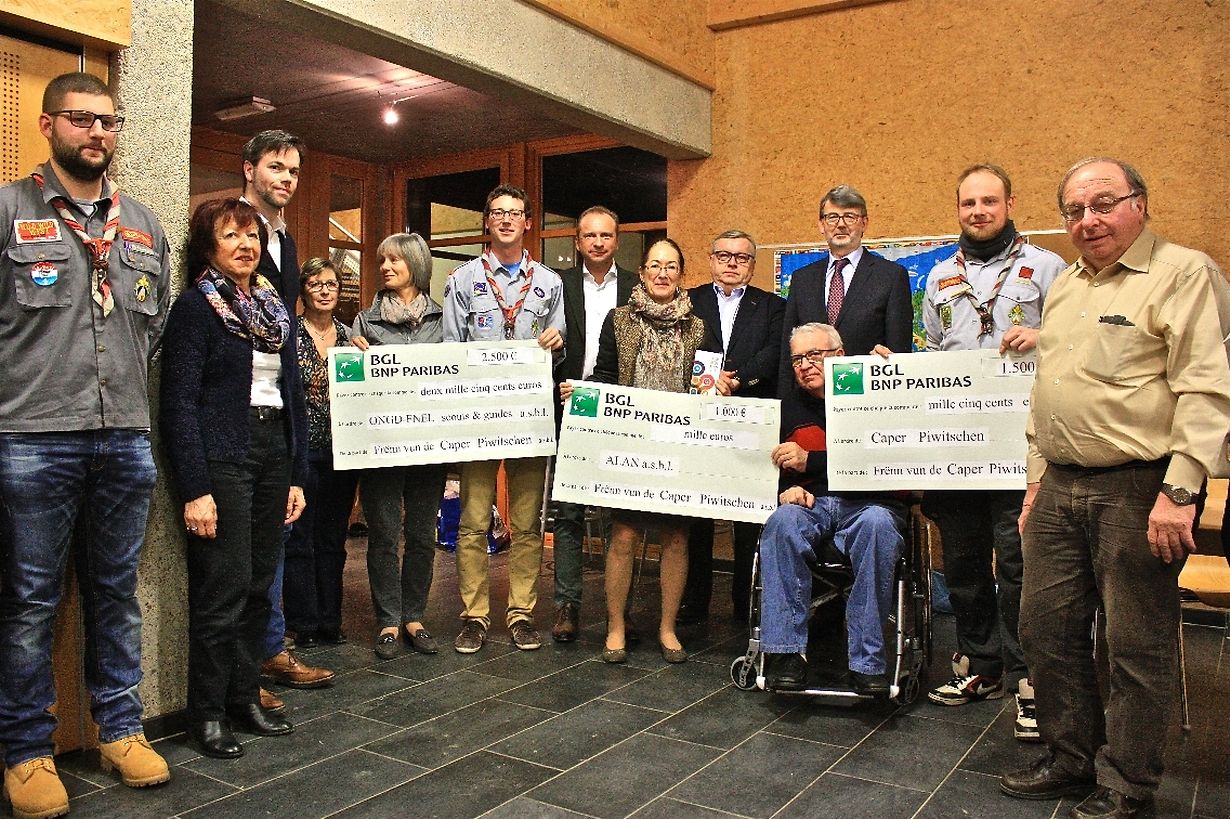 Bei Geleeënheet vun de Generalversammlungen vum Scoutsgrupp Caper Piwitschen a vun der Amicale Frënn vun de Caper Piwitschen goufen jeweils e Scheck vun 1.000 € un d’Alan an e Scheck vun 1.500 € un d’Caper Piwitschen iwwerreecht. D’ONGD-FNEL konnt sech iwwert e Scheck vun 2.500 € freeën mat deem en Entwécklungsprojet am edukative Beräich am Nepal ënnerstëtzt gëtt. Dës Donen ware méiglech duerch déi vill Aktivitéiten vun der Amicale iwwert d’Joer an haaptsächlech duerch den Erléis vun de mëttlerweil traditionelle Raclette-Owender an der Konschtausstellung déi d’Amicale all Joer Enn November organiséiert.