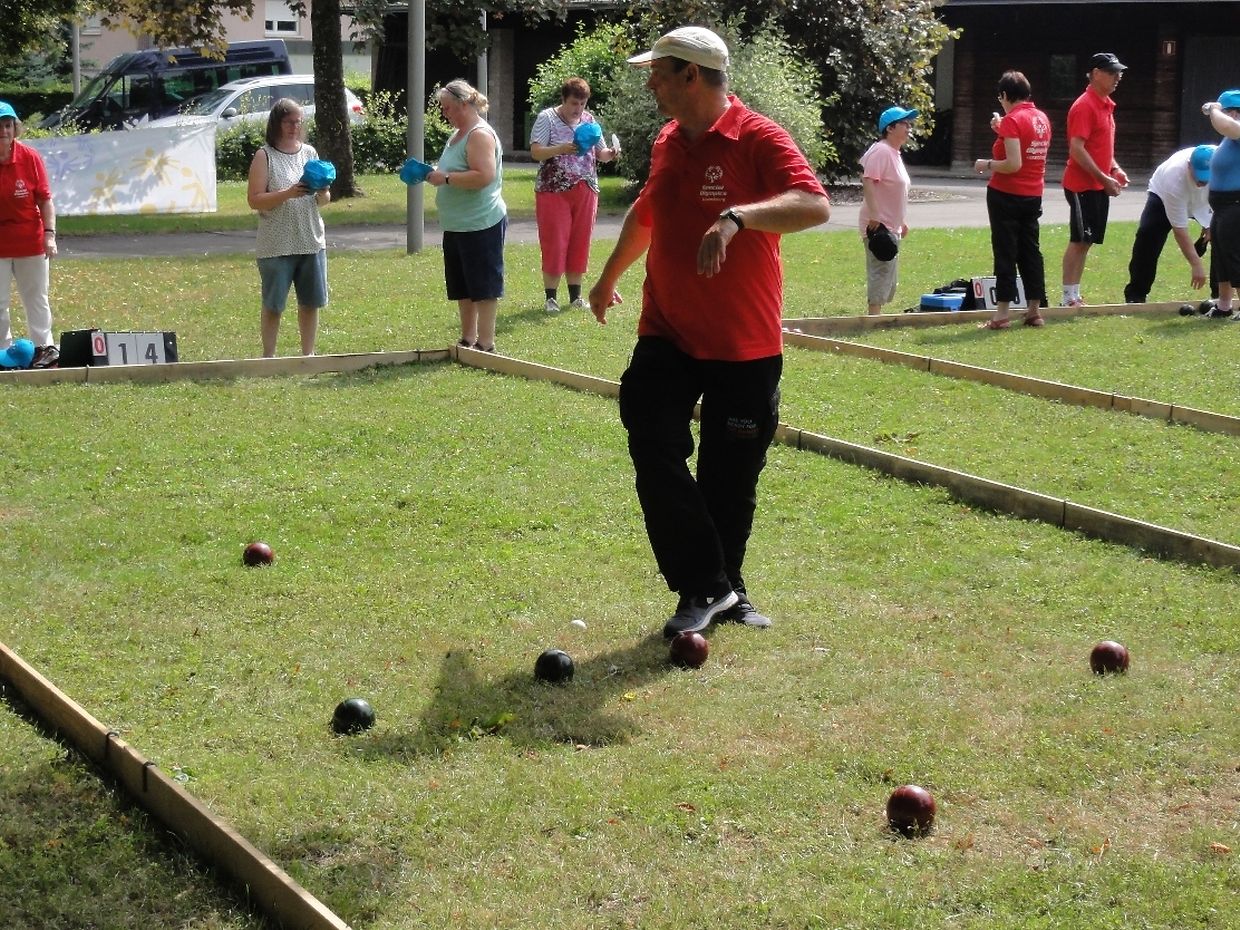 Samedi 27 Juillet, quelques 40 joueurs de Bocce ont répondu à l'invitation de Special Olympics Luxembourg et du DayCenter de la Ligue HMC pour disputer un tournoi de Bocce dans le parc derrière la Villa de la Ligue HMC à Capellen. Sous un beau soleil les sportifs ont joué dans 5 groupes différentes avec comme vainqueurs les couples suivant : Berg / Kirpach, Domini / Bräuer, Koch / Frederick, Stumpf / Johanns et Dumont / Flammant. Un grand Merci aux volontaires présents qui ont offert leur journée du samedi pour donner la possibilité aux joueurs ayant une déficience intellectuelle de pratiquer leur sport favori.