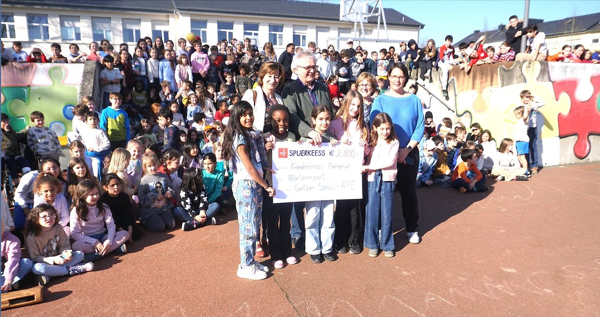 Luxemburg - Cents 2.000+10.000=12.000 € an der Schoul um Cents Jean-Paul Arendt Veröffentlicht am Dienstag, 15. Juli 2025 um 10:49 Cents Luxemburg Fir datt Kanner och am Kamerun därfen an d'Schoul goen, hun d'Schoulkanner vum Cents mam Erléis vum Wantermart an charity run 12.000.-€ beigedroen, fir 2 Schoulklassen zu SOA bauen ze loossen. de Frëndeskrees Kamerun seet Bravo a MERCI! Unpassenden Inhalt angeben Weitere Neuigkeiten von Jean-Paul Arendt > Quelle joie ! 29.08.25 Bous Grousse Succès fir de Solidaritéitsbeemchen on tour 2024 (Frëndeskrees Kamerun) 16.01.25 Niederanven Gelongenen Schoulofschloss zu Trënteng 16.07.24 Trintingen Traulichtfeier in Mensdorf 09.11.23 Mensdorf Schetzelfeier 18.08.23 Hostert (Niederanven)