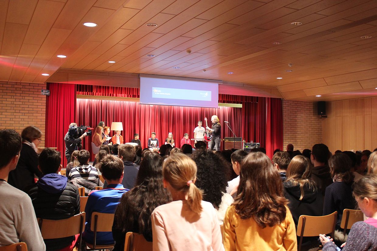 Kirchberg – schrille Gitarrenklänge schallen aus dem Salle de fête der Sainte-Sophie über die Schulgänge. Passagen von Queen-Klassikern wie „We Will Rock You“ und „We Are The Champions“ ist zu hören. Was geht denn da am Morgen des 16. Novembers in der Schule am Kirchberg vor sich?