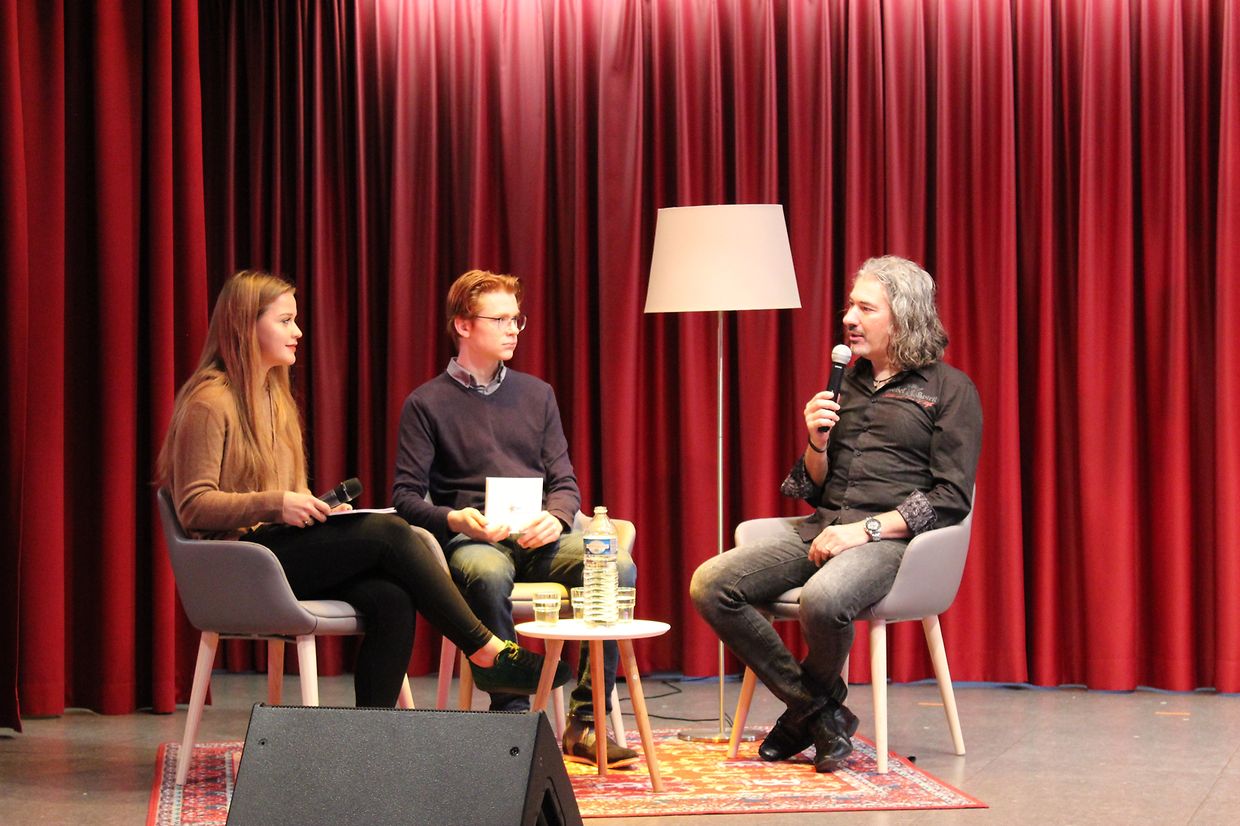 Frank Rohles, international agierender Musiker und von Brian May (Gitarrist der Band Queen) persönlich für das weltweit gefeierte Muscial „We Will Rock You“ ausgewählt, ist der Einladung der Sainte-Sophie gefolgt, um mit der Schulgemeinschaft einen musikalischen wie informativen Morgen zu verbringen. Schülerinnen und Schüler haben ein spannendes Event für ihr Mitschüler auf die Beine gestellt. Im Salle de fête warten rund 230 Schüler gespannt auf das Kommende. Unter tosendem Applaus treten die zwei Moderatoren Alexandra Zaiko und Falk Dorstewitz durch den Saal, um die Anwesenden vor dem noch geschlossenen samtroten Vorhang einzustimmen.