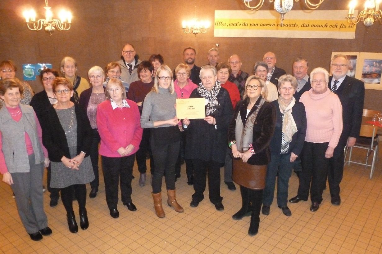 Im Zuge des Weihnachtsmarkts und des Weihnachtskonzerts haben die Vereine aus Fetschenhof-Cents, allen voran die Fraen a Mammen, zusammen mit der Musikgesellschaft, dem Gesangverein und der Amicale der Guiden a Scouten, fleißig Geld für ein Projekt der Hilfsorganisation CSI Lëtzebuerg gesammelt, die sich dafür einsetzt, dass benachteiligte Menschen Zugang zu einer qualitativen Bildung erhalten. CSI investiert die großzügige Spende in Höhe von 10 000 Euro integral in ein Projekt zur Gesundheitserziehung von Frauen in den Slums der peruanischen Hauptstadt Lima. Dort werden 50 Frauen in den Bereichen gesunde Ernährung, Hygiene, Erste Hilfe, Müllentsorgung, usw. weitergebildet, wodurch die Lebensbedingungen in den Slums von Lima sich seit dem Beginn des Projekts deutlich verbessert haben. Anlässlich der Schecküberreichung am 8. Februar stellte CSI-Mitarbeiterin Sandra Scheuren das Projekt vor und bedankte sich bei allen, die in irgendeiner Weise dazu beigetragen haben, diese großzügige Spende zusammenzutragen.