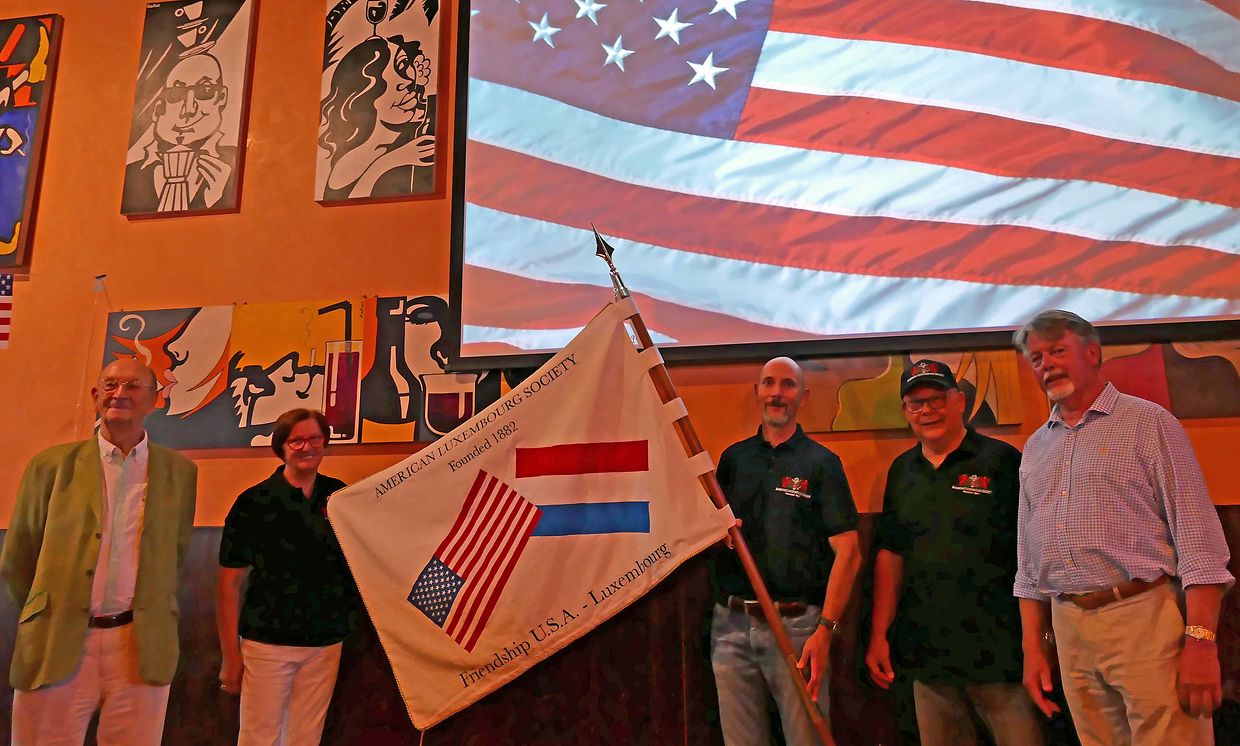 Clausen.Am 4. Juli 1882 gründete im Hotel Grand-Chef in Bad-Mondorf eine kleine Gruppe luxemburgischer Emigranten, die im 17. Jahrhundert nach Amerika ausgewandert waren, den „American Club“, mit dem Ziel auch noch weiterhin die US- Feste weiterhin zu feiern. 1953 änderte der Verein den Namen in „American Luxembourg-Society“. Im Laufe des Zeit feierten die Mitglieder den „Memorial Day“, den „Thanksgiving Day“ sowie am vergangenen 4. Juli den „Independance Day“. Der Unabhängigkeitstag auch Fourth of July genannt, ist der Nationalfeiertag der Vereinigten Staaten von Amerika. Er erinnert an die Ratifizierung der Unabhängigkeitserklärung der Vereinigten Staaten durch den Kontinentalkongress am 4. Juli 1776. An jenem Tag wurden die ehemals britischen dreizehn Kolonien erstmals in einem offiziellen Dokument als „Vereinigte Staaten von Amerika“ bezeichnet. Obwohl die rechtliche Grundlage der Vereinigten Staaten erst mit der Ratifizierung der noch heute gültigen US-Verfassung von 1787 am 21. Juni 1788 entstand, wird bereits der 4. Juli 1776 als Akt der Staatsgründung angesehen. So trafen sich die Mitglieder der American Luxembourg Society im „May Be Not Bob’s“ und als Special Guest weilte HonorarkonsulMichael ANSAY aus dem Bundesstaat Wisconsin unter den Gästen. Präsident Marc Salentiny nutzte die Gelegenheit den Mitgliedern die neue Vereinsflagge vorzustellen. (G.L.) www.als.lu