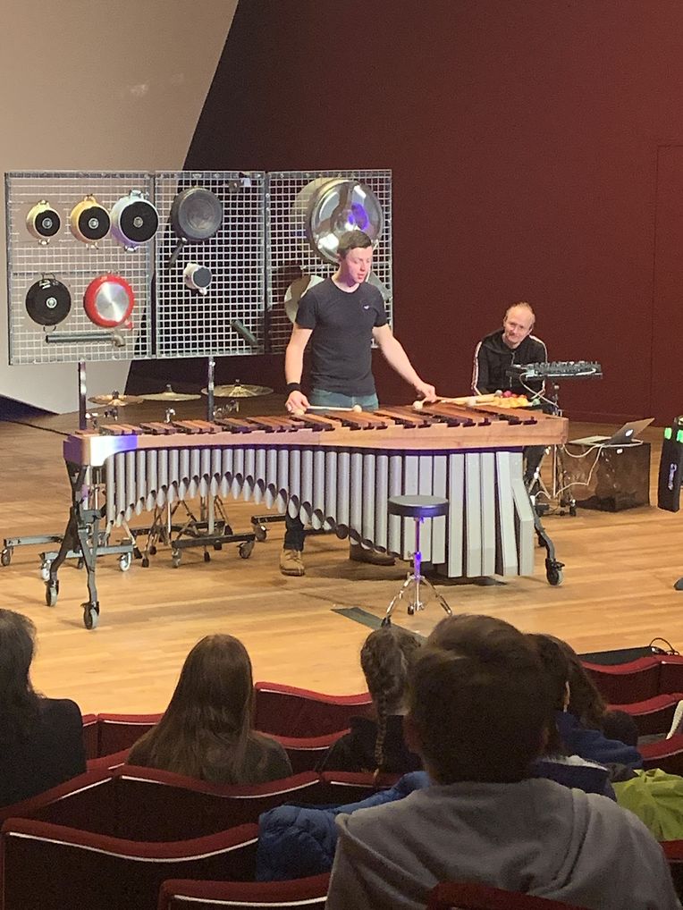 Laut ist es in der Pausenhalle. Nein, es ist nicht die übliche Lautstärke in der großen Pause. Das gesamte Lycée général und die Klasse 4.2 hat sich versammelt, um sich auf den Weg in die Philharmonie zu machen. Schon Wochen im Voraus schaute auf einem Plakat zu sehender sympathisch wirkender Mann mit Schlagzeugschlägeln und Mallets in der Hand auf die vorbeigehenden Schülerinnen und Schüler im Schulgebäude.
