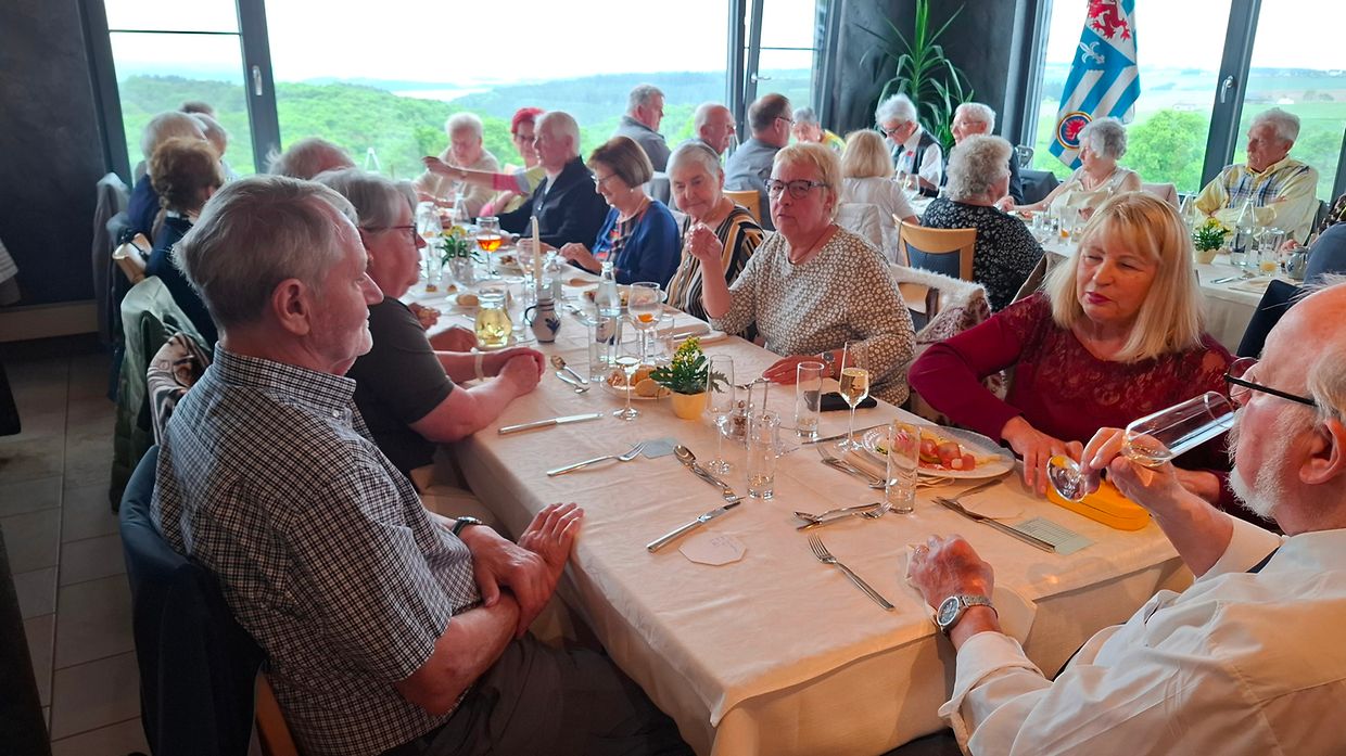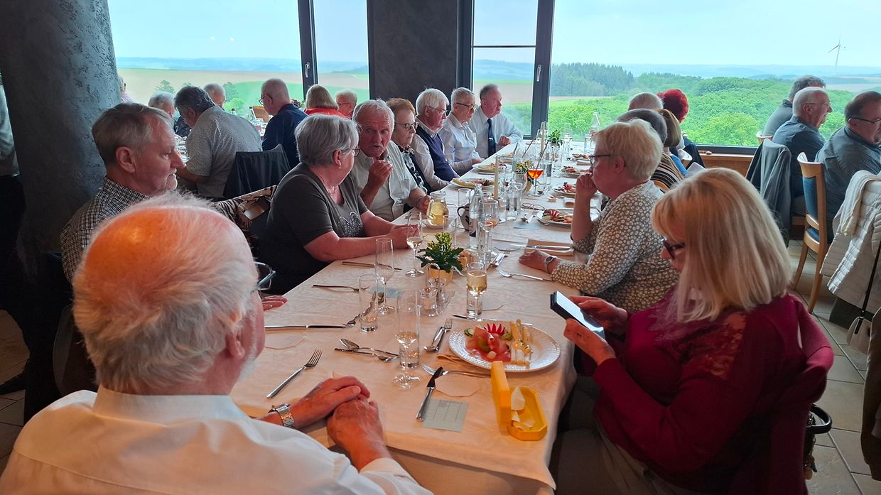Samschdeg, de 17, Mee 2025 hunn sech op Aluedung vum CA vun der AAAL 37 Memberen vun de fréier Artilleristen mat hiere Gardisten- a Militärpolizeifrënn zu Kierf afonnt fir den CEBA-Musée ze besichen. Encadréiert goufen si vun de Kohnen Bridder déi hinnen intressant a objektif Detailler vun der Ardenneschluecht an den Ausstellungsstécker an hierem Musée erzielt hunn. Fir d'Mëttegiessen ware mir am Hotel-Restaurant Reiff zu Fëschbesch wou mir och de Rescht vum Nomëtteg a gesellschafftlecher Atmosphäre verbruecht hunn.