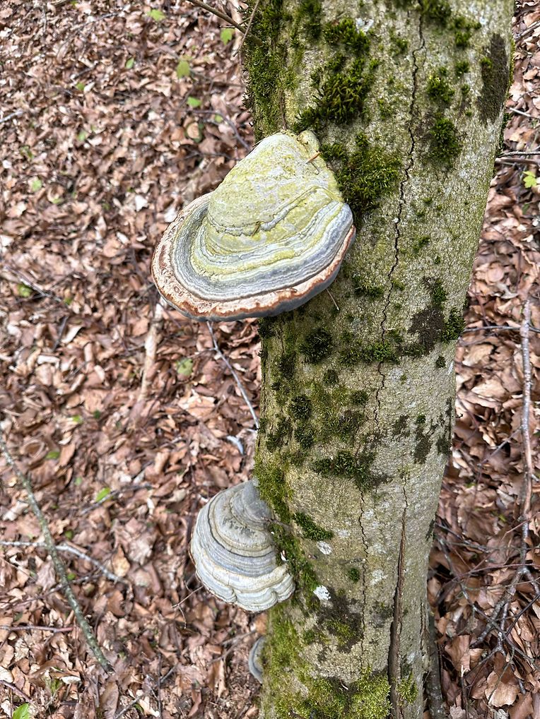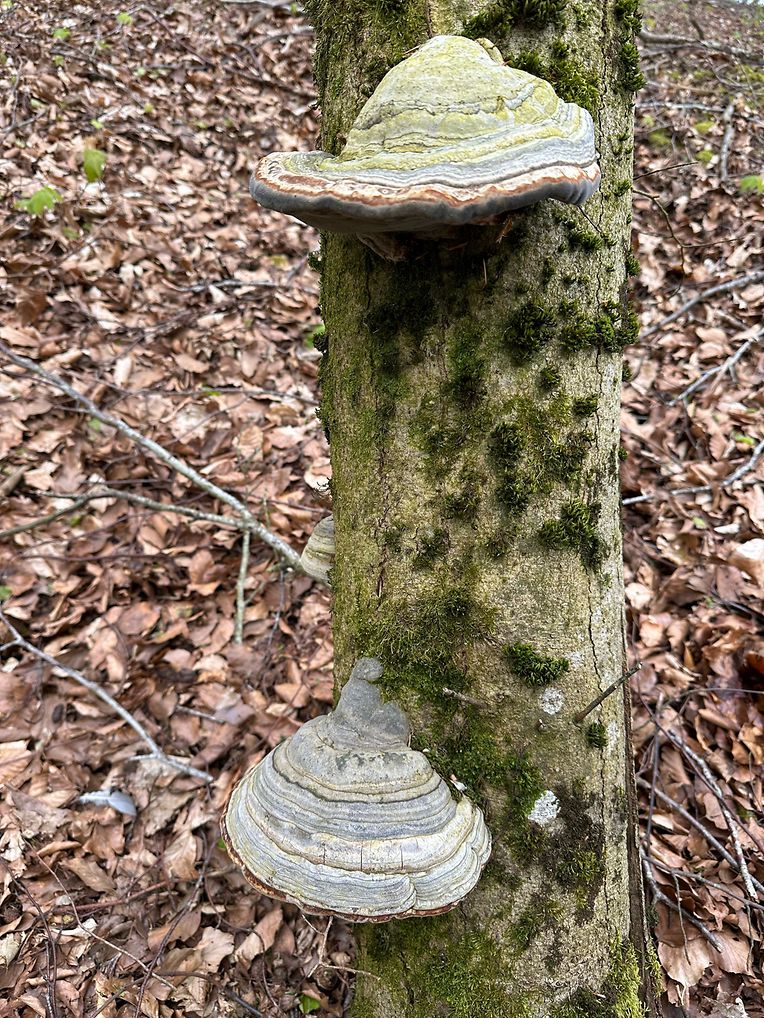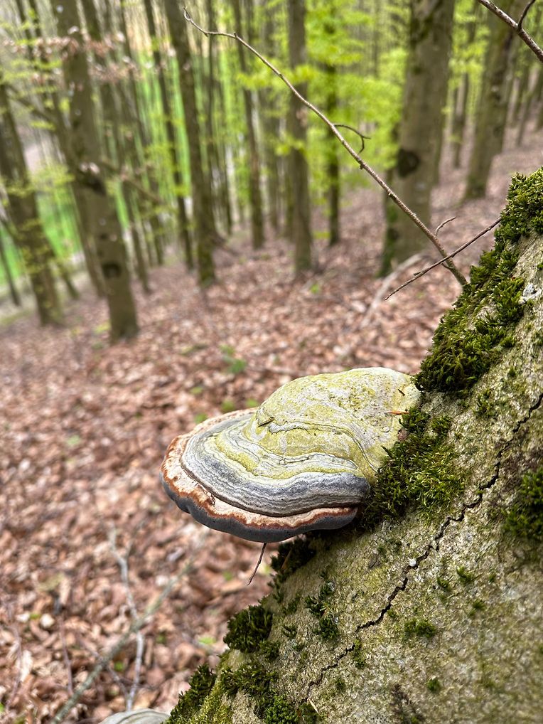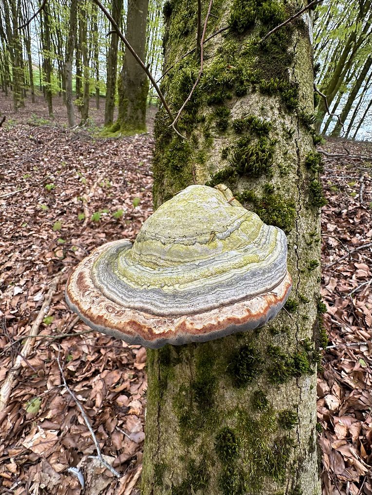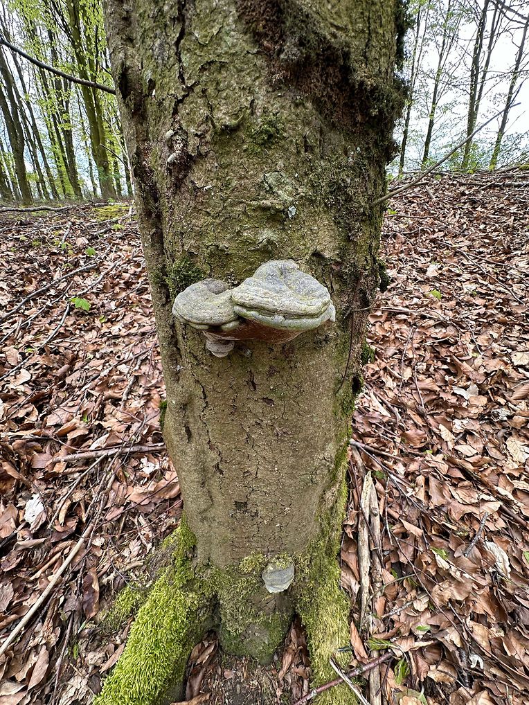 Der Zunderschwamm (Fomes fomentarius) ist ein Schwäche- und Wundparasit und wächst bevorzugt an alteren Stammen von Buche und Birke, seltener an anderen Laub- und Nadelbäumen. Die auf den Stämmen sitzenden, halbkreisförmigen und relativ großen Fruchtkörper sind sehr auffällig.