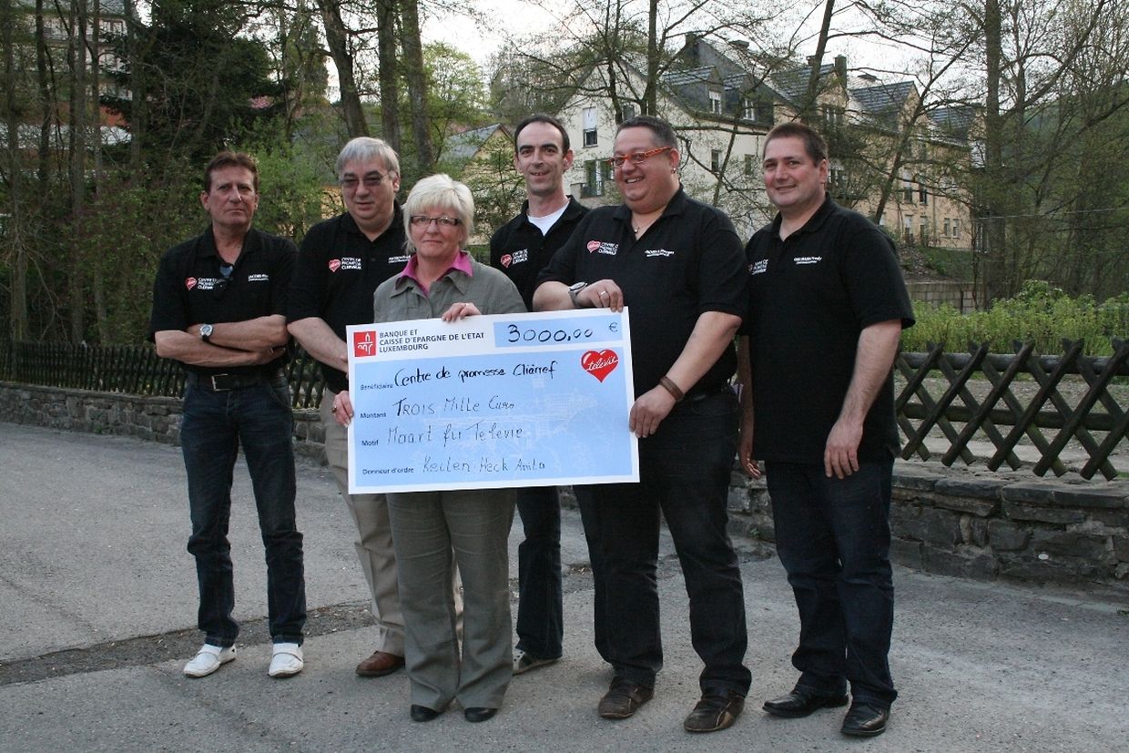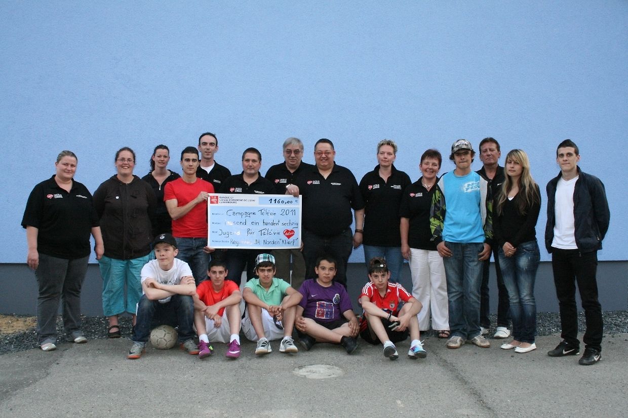 Am kommenden 07. Mai findet das "Centre de Promesse" von "Télévie in Clerf statt. Im Vorfeld hatten zahlreiche Vereine der Gemeinde Clerf Geld anlässlich ihrer anghaltenen Feste abgezweigt, um eine Spende für "Télévie" zu tätigen. Dabei kamen mit einzelnen Geldspenden von Privatpersonen insgesamt 28 237 Euro zusammen, die demnächst an Télévie überwiesen werden. Die Fotos zeigen die Spender am Tag der Schecküberreichung im Jugendhaus in Clerf.