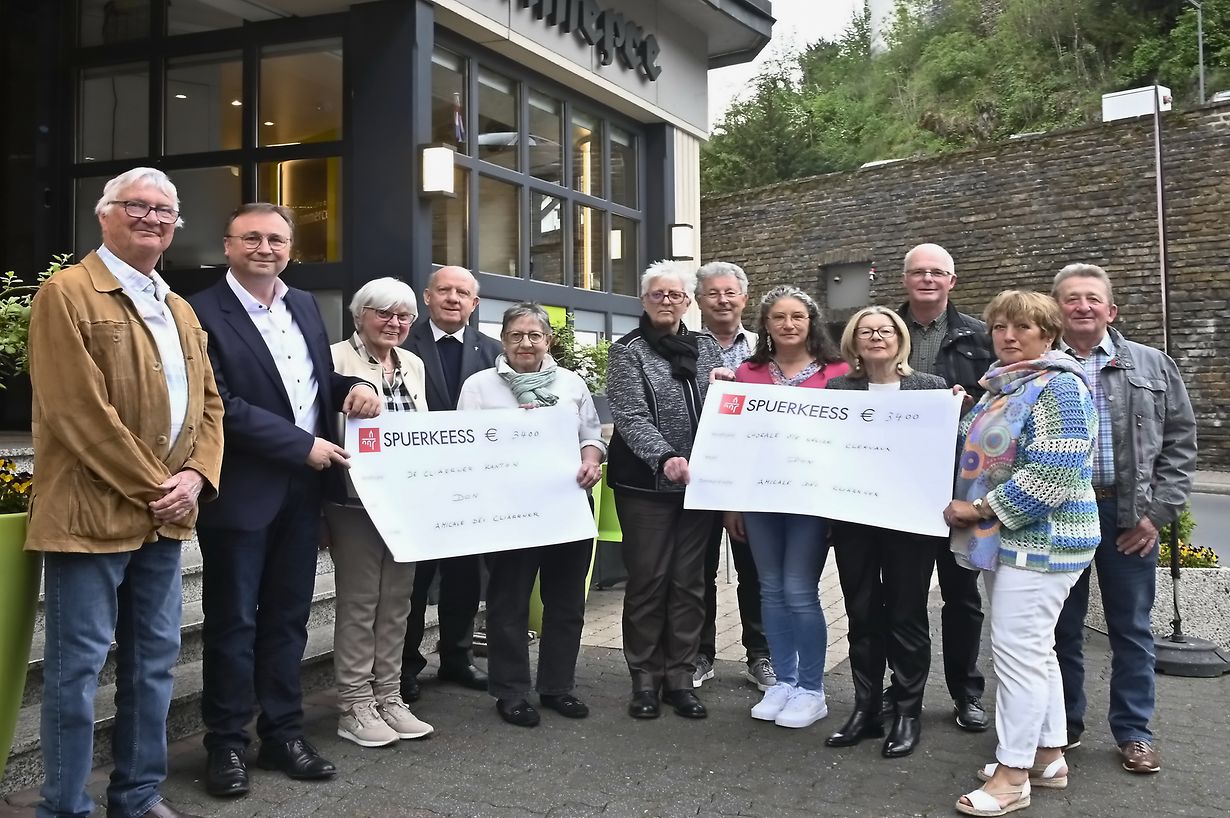 In den letzten Jahren verstarben jedoch etliche ihrer aktiven Mitglieder, andere konnten altersbedingt nicht mehr am Vereinsleben teilnehmen. Da sich kaum Nachwuchs einstellte, fehlte es nach und nach an Dynamik, so dass die verbliebenen Mitglieder entschieden, die Vereinigung aufzulösen. Ein Teil des Restvermögens wurde am 8. Mai in Form einer Spende zu gleichen Teilen an die Vereinigung „De Cliärrwer Kanton“ (DCK) und an den Kirchenchor von Clerf übergeben. André Bauler (DCK) und Anne Weis (Chorale Ste Cécile) nahmen die Schecks aus den Händen von Josée Stark-Schütter und Léon Weis entgegen. Sie bedankten sich für die großzügige Geste und betonten, dass das Geld vornehmlich für kulturelle Zwecke genutzt wird.