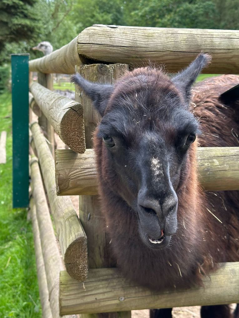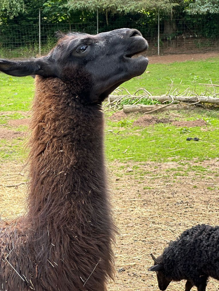 Quand le lama est énervé, il rabat ses oreilles en arrière et fait claquer sa langue, produisant de la salive qu'il conserve dans sa bouche. Si ce premier avertissement ne suffit pas, il peut alors envoyer le liquide jusqu'à 3 mètres de distance.