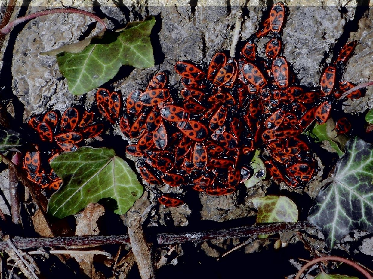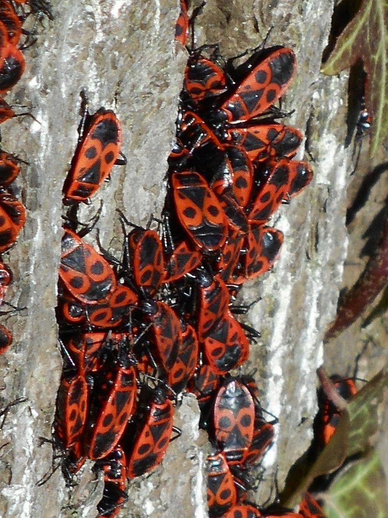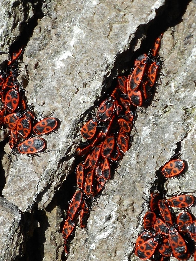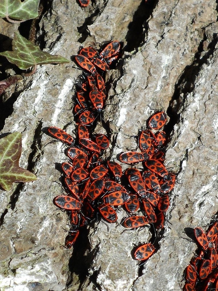 Beim spazeieren goen entdecken mäer e schéint Naturschauspill : Roud-schwaarz Feierwanzen ( Pyrrhocoris apterus Pyrrhocoridae) krabbelen aus hirer Wanterschlofplaatz an sonnen sech bei 12°C. Iwwerall krabbelen se ronderëm. D'Fréijoer ass do !