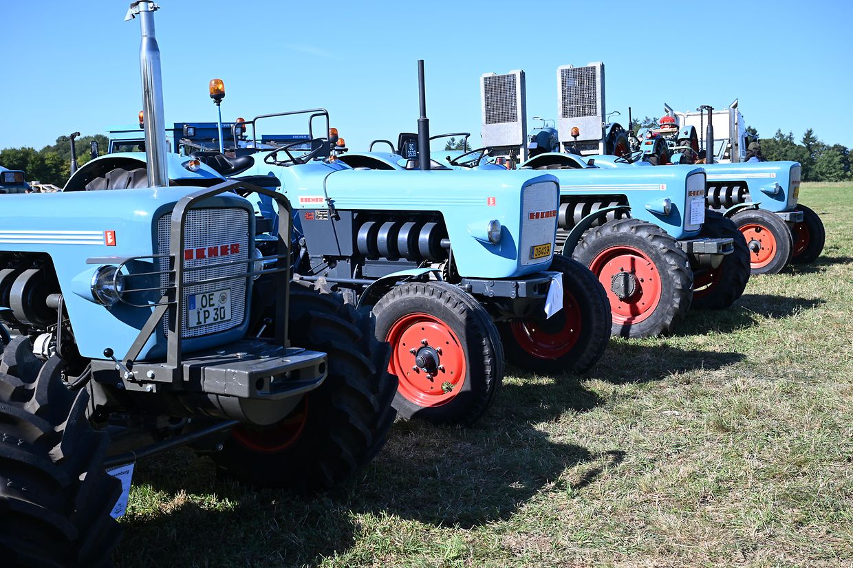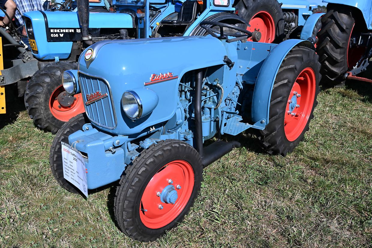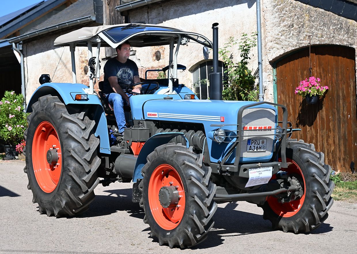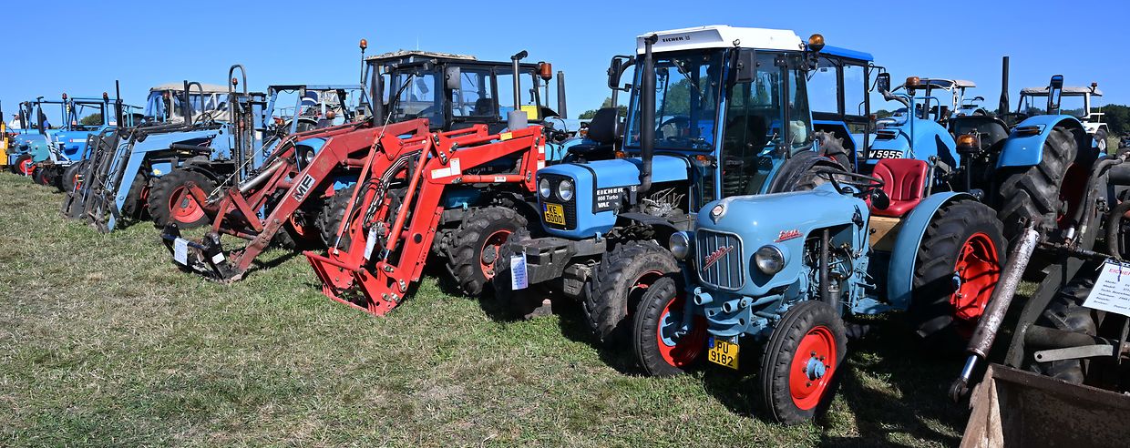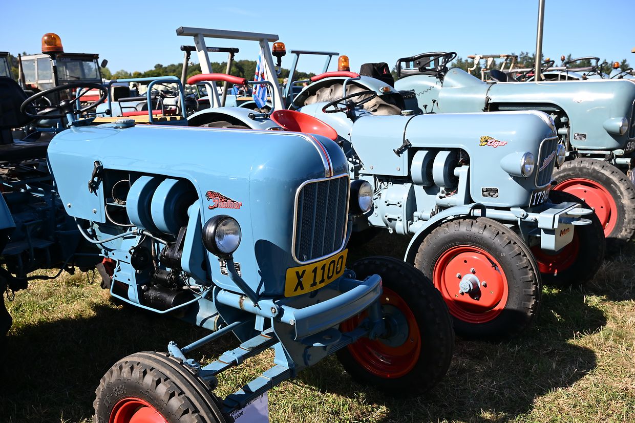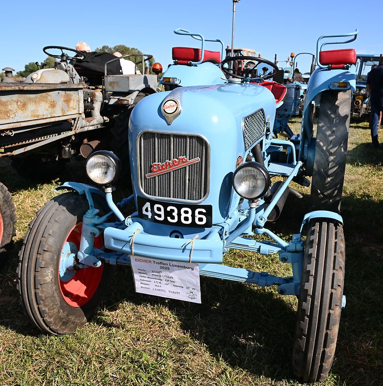 Eng Iddi hun an déi an d’Wirklichkeet ëmsetzen, dat huet de John Krack als passionnéierten Eicher- Traktersammler um Weekend vum 16. August och derzou bewegt, bei sengem Heemechtshaus um Brosiushaff bei Colmar- Bierg, engt internationalt Traktertreffen vun der bekannter Mark Eicher, ze organiséieren. Et hat sech rentéiert, well niewt senger egener Sammlung vun ronn 35 Exemplaren waren der „Eicheren“ eppes méi wi 115 Stéck aus Daitschland, Holland, der Belge an och aus Lëtzebuerg present a ganz stolz drop , fir hir zum Deel wonnerbar restauréiert Eicher- Trakteren dem Publikum virzestellen. Niewt Kanneranimation an der Virstellung vun ausgewielten Trakteren, konnten di ganz vill Eicher- Ferventen vun no a wäit aus dem Ausland sech di zwéin Deeg vill Literatur an och nei an gebraucht Ersatzdeeler eraus sichen. Och e schéinen Trakter- Tour duerch di wonnerbar Natur stong um Programm. D’Kollegen vum „Tëff Tëff Waarken mat den „Trakterfrënn Nacher“ souwi och d’Amicale Pompjeeën Colmar- Bierg“ waren um Dill an haaten fir en excellenten Service mat Gedrënks an Iessen och bäschtens gesuergt. Op alle Fall konnt de John Krack als Organisator mat sengem Team fir dat éischt internationalt Eicher Trakterfeffen hei zu Lëtzebuerg och ganz zefridde sin. (CR (Fotoen: Charles Reiser)