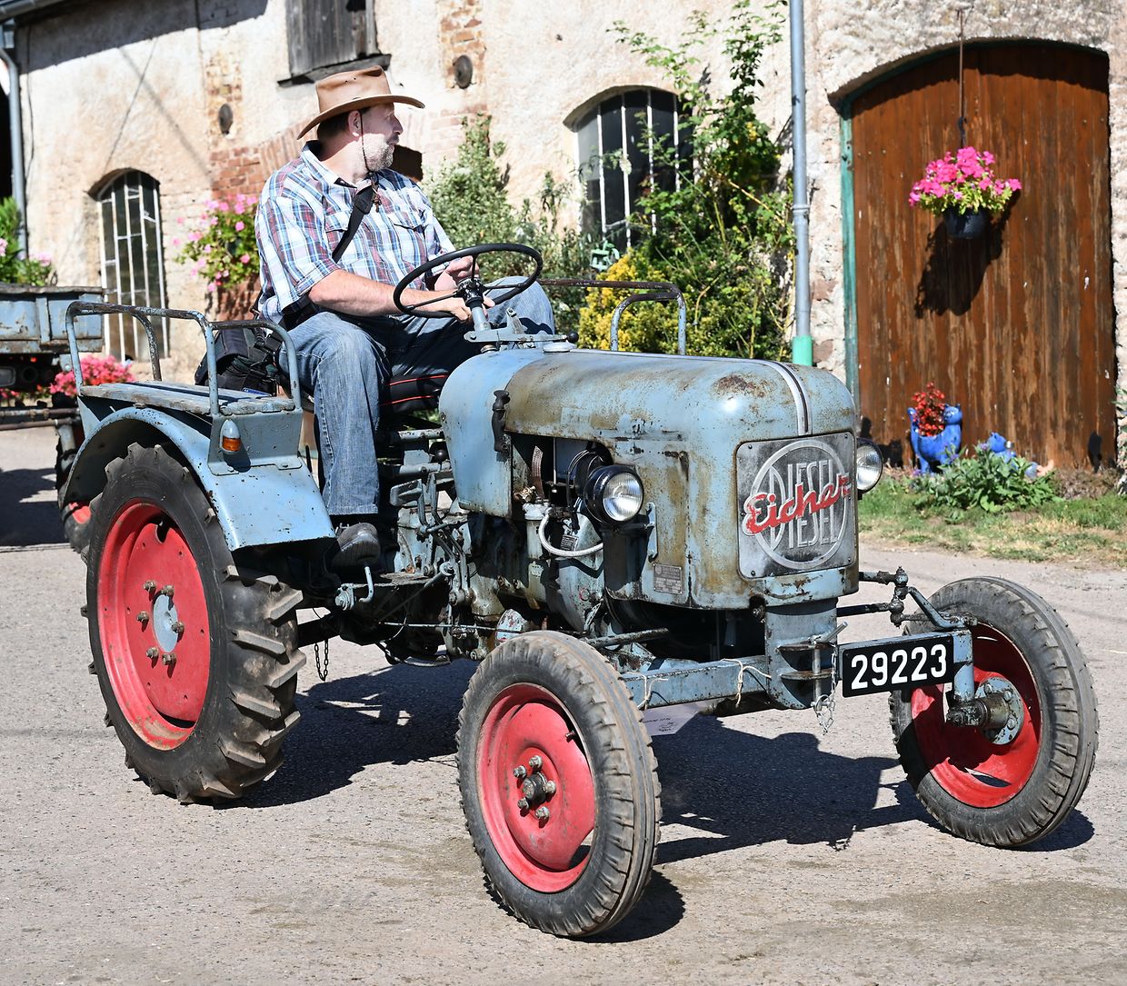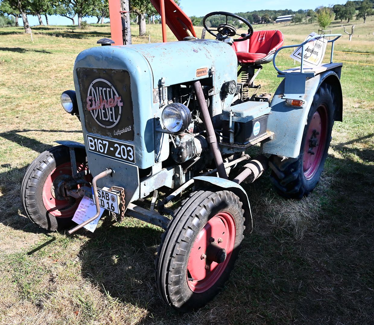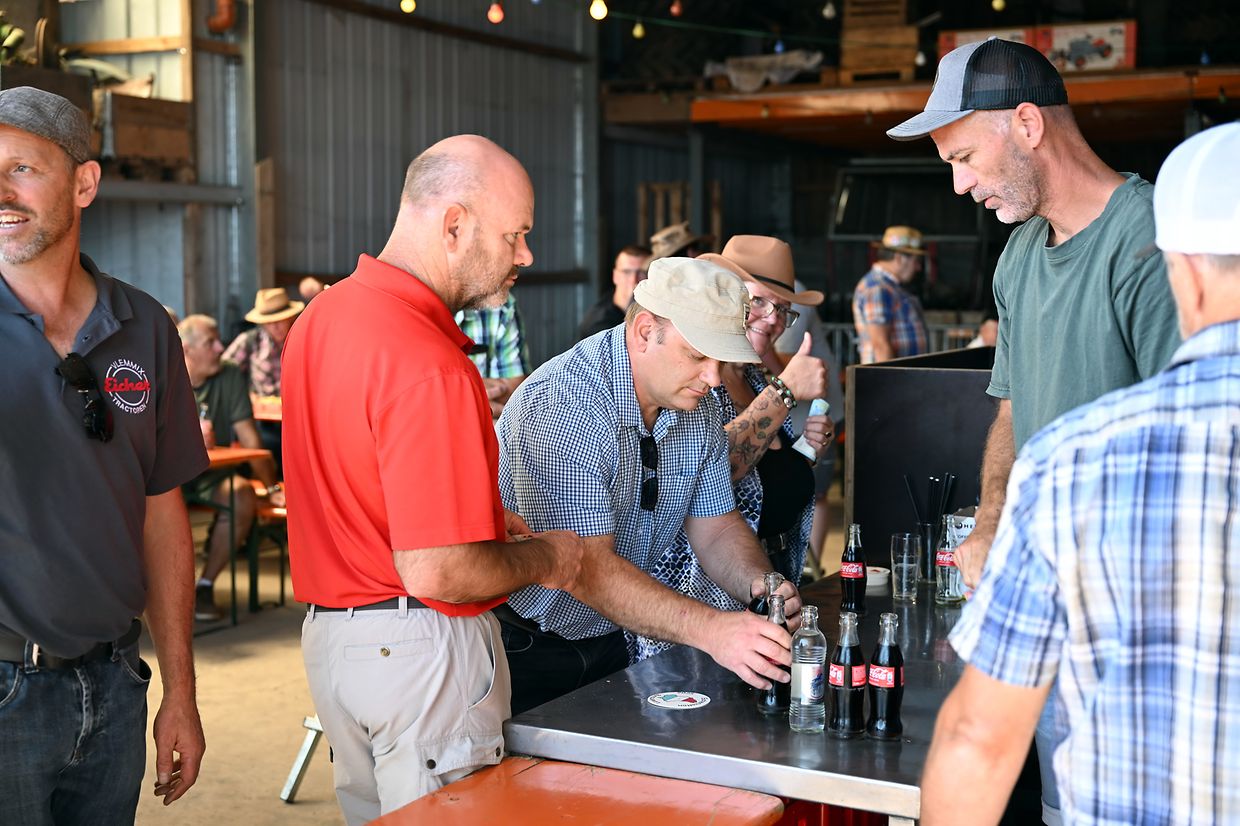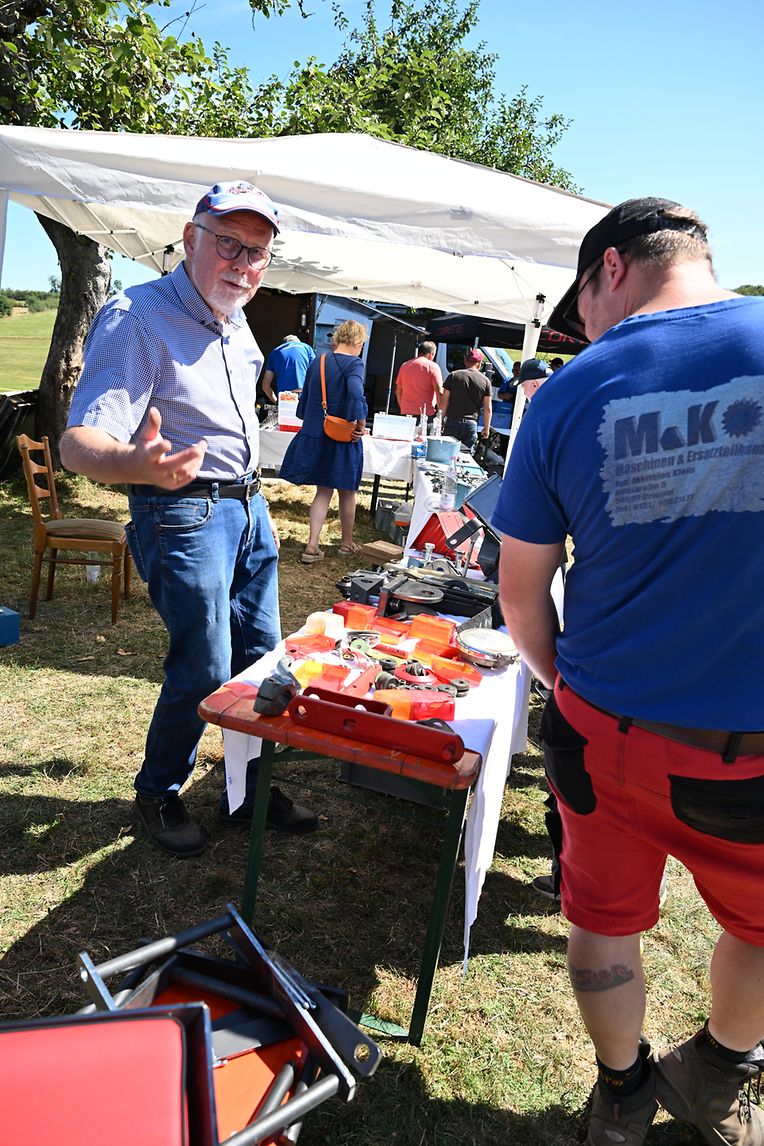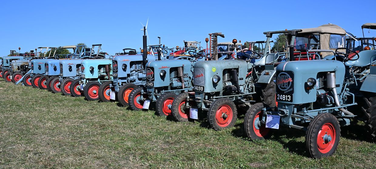 Eng Iddi hun an déi an d’Wirklichkeet ëmsetzen, dat huet de John Krack als passionnéierten Eicher- Traktersammler um Weekend vum 16. August och derzou bewegt, bei sengem Heemechtshaus um Brosiushaff bei Colmar- Bierg, engt internationalt Traktertreffen vun der bekannter Mark Eicher, ze organiséieren. Et hat sech rentéiert, well niewt senger egener Sammlung vun ronn 35 Exemplaren waren der „Eicheren“ eppes méi wi 115 Stéck aus Daitschland, Holland, der Belge an och aus Lëtzebuerg present a ganz stolz drop , fir hir zum Deel wonnerbar restauréiert Eicher- Trakteren dem Publikum virzestellen. Niewt Kanneranimation an der Virstellung vun ausgewielten Trakteren, konnten di ganz vill Eicher- Ferventen vun no a wäit aus dem Ausland sech di zwéin Deeg vill Literatur an och nei an gebraucht Ersatzdeeler eraus sichen. Och e schéinen Trakter- Tour duerch di wonnerbar Natur stong um Programm. D’Kollegen vum „Tëff Tëff Waarken mat den „Trakterfrënn Nacher“ souwi och d’Amicale Pompjeeën Colmar- Bierg“ waren um Dill an haaten fir en excellenten Service mat Gedrënks an Iessen och bäschtens gesuergt. Op alle Fall konnt de John Krack als Organisator mat sengem Team fir dat éischt internationalt Eicher Trakterfeffen hei zu Lëtzebuerg och ganz zefridde sin. (CR (Fotoen: Charles Reiser)