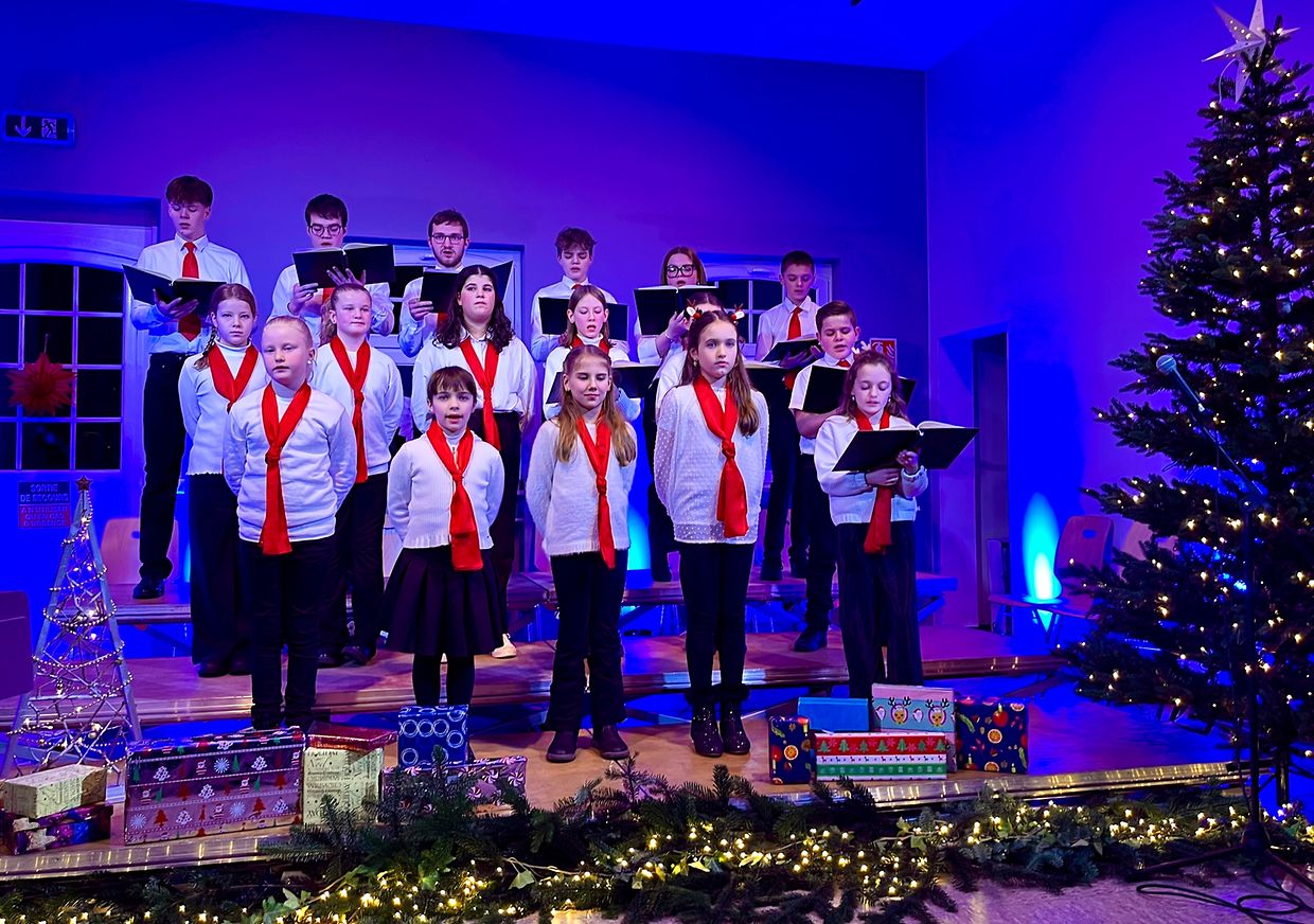 Um 4. Adventssonndeg hunn d‘Sänger*innen vum Kanner- a Jugendchouer Konsdref eis mat engem wonnerschéine Chrëschtconcert verwinnt. Mat der Ënnerstëtzung vun hirer Band, dem Romain Boden um Kontrabass an dem David Hoffmann um Drumset, an ënnert der Leedung vum Anna Nikolay hunn si hire Publikum begeeschtert. Mat klasseschen a moderne Lidder huet een am rammelvolle Sall um Scheedgen eng ganz wonnerbar Chrëschtambiance erlieft. Ee ganz decke Merci, dass mir mat hinnen zesummen dee flotten Owend mat uschléissendem Glühwäin a Chrëschtgebäck konnte genéissen a geselleg ausklénge loossen.
