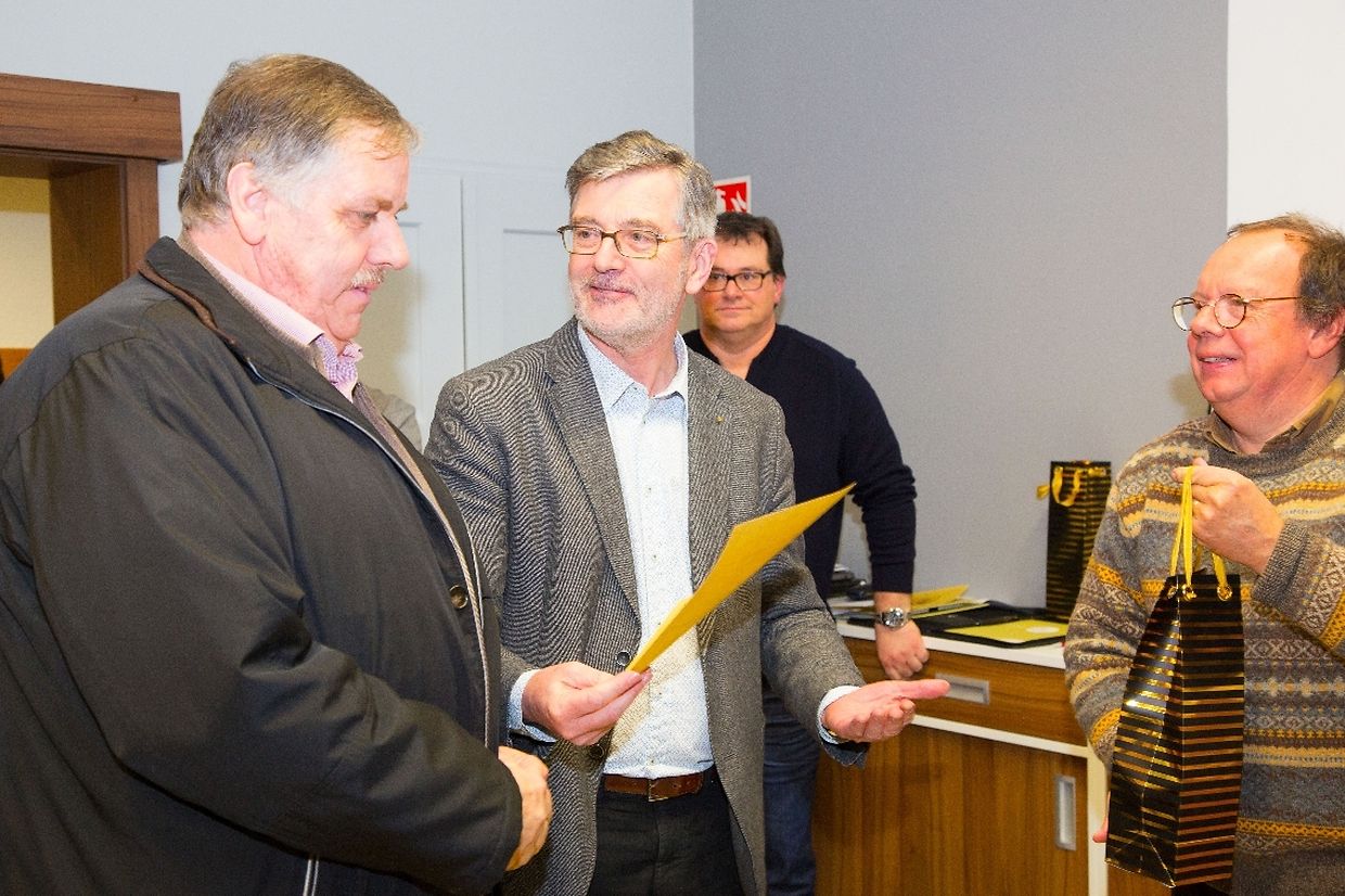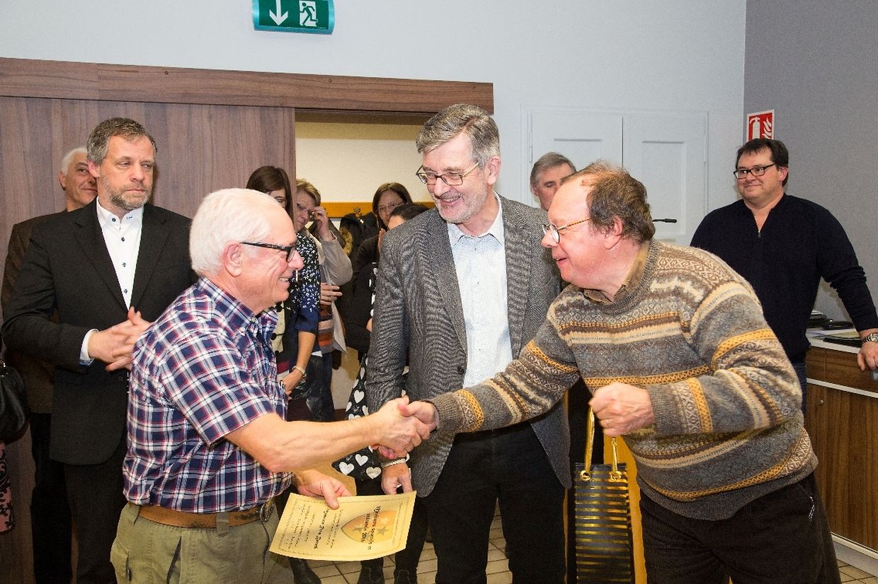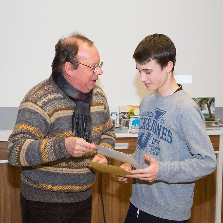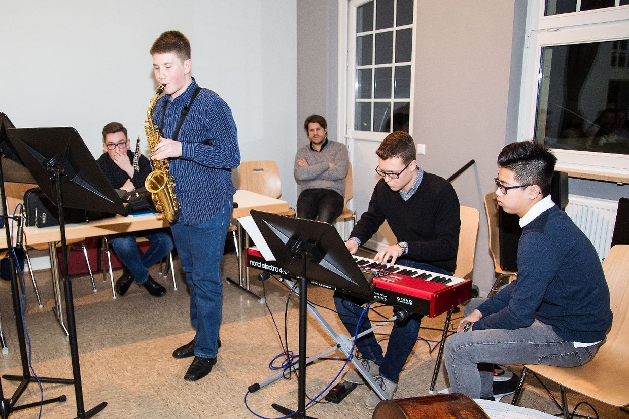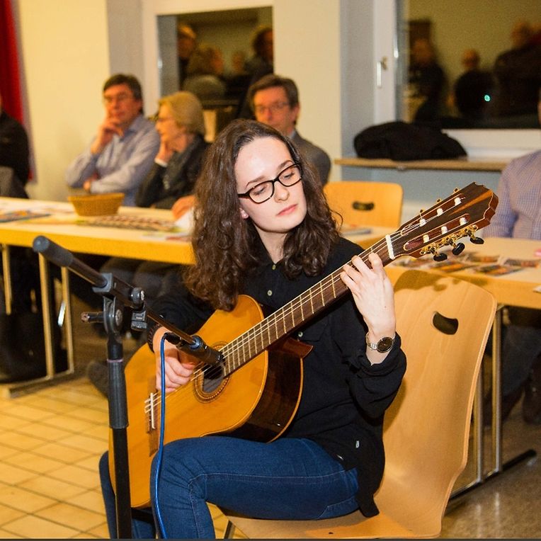 Während junge SchülerInnen aus der Echternacher Musikschule, unter der Obhut vom Bassisten Marc Demuth, den Abend durch vortrefflich dargebotene musikalische Intermezzi auflockerten, kam es alsdann zur Ehrung verdienstvoller Sportler und Kulturschaffender. Ein passendes Geschenk als Anerkennung sowie eine Erinnerungsurkunde an die geleisteten Dienste wurden ihnen vom Schöffenrat überreicht: Léon Hoelzmer, Badminton-Vizemeister 2016 im Einzel sowie im Doppel in der Kategorie Scolaires; Meister im Einzel im Jahr 2015 (Badminton Junglinster); Remo Berardi, 1.722 km Wandern im Laufe von 2016 (Wanderverein The World Runners Consdorf); Alphonse Steinmetz, 34 Jahre Organist, 28 Jahre Dirigent, 22 Jahre Sekretär beim Gesangverein Sängerbond Scheedgen.