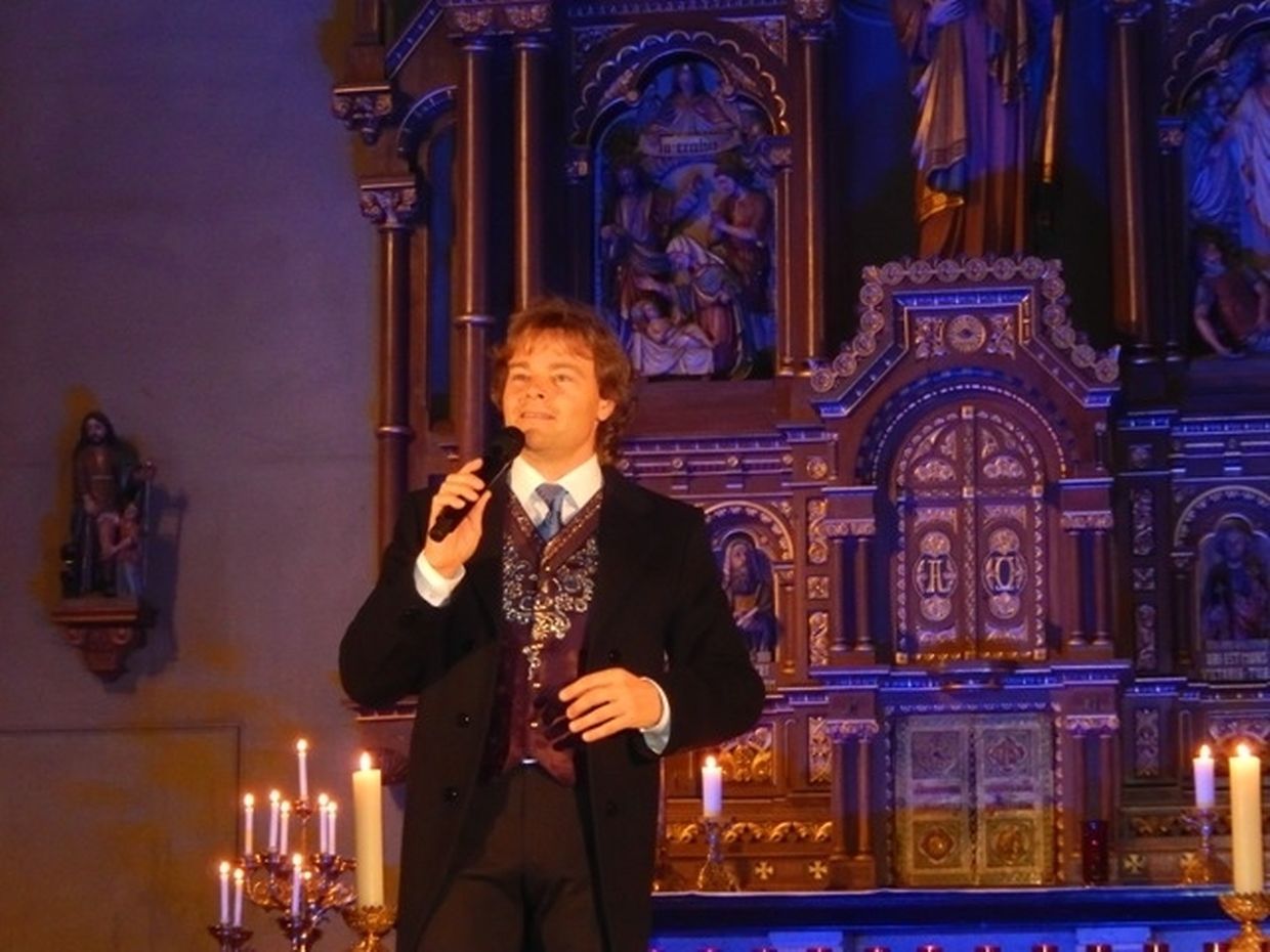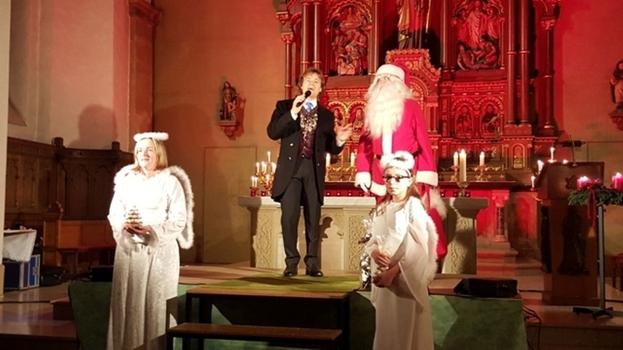 Zum 5.ten Mal hatte der Fan Club "Roude Léiw" zum Weihnachtskonzert mit Rudy Giovannini in die Dorfkirche von Consdorf eingeladen. Freunde und Fans vom Südtiroler Publikumsliebling Rudy Giovannini waren gerne dieser Einladung gefolgt. Rudy Giovannini, begeisterte sein Publikum von der ersten bis zur letzten Minute. Die technische Panne mit Stromausfall konnte dem „Caruso der Berge“ wie Rudy auch liebevoll von seinen Fans genannt wird nichts anhaben. Nach der ersten Schrecksekunde fragte Rudy das Publikum, ja was machen wir nun und beantwortet sich seine Frage gleich selber; Machen wir das was ich am besten kann, nämlich singen und so erklang der wunderschöne Titel „1000 Kerzen brennen schweigend durch die Nacht“ aus der Kehle des Tenors und nicht aus der Steckdose durch das Kirchenschiff in der von T. K. weihnachtlich festlich geschmückten Consdorfer Kirche. Da die technische Panne etwas andauerte , konnte Rudy durch eine weitere a Capello Einlage auch den letzten Zweifler überzeugen, dass er immer live singt, was zu Recht zu anhaltendem Applaus und Standing Ovation geführt hat.