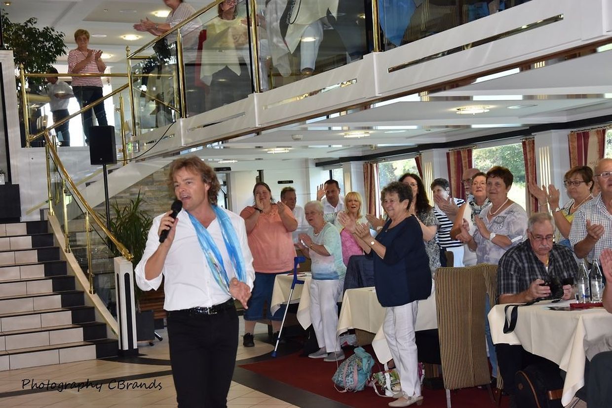 Trotz gebrochenem linken Oberarm, verbunden mit starken Schmerzen nahm Publikumsliebling Rudy Giovannini die Strapazen der langen Anreise auf sich um seine Luxis, wie er seine Fans und Freunde von Luxemburg liebevoll nennt nicht im Stich zu lassen und sie mit seinen schönen Liedern und Späßen zu erfreuen. Die romantischen, teils auch schwungvolle Lieder seiner neuen CD „Dankeschön für dieses Leben“ kam ganz besonders gut beim Publikum an und es wurde fleißig geschunkelt, getanzt und gelacht. Mit Standing Ovation und nicht enden wollenden tosendem Applaus bedankten sich das Publikum nach 7 stündiger Fahrt bei Ihrem Rudy und wünschten ihm weiter gute uns schnelle Besserung.
