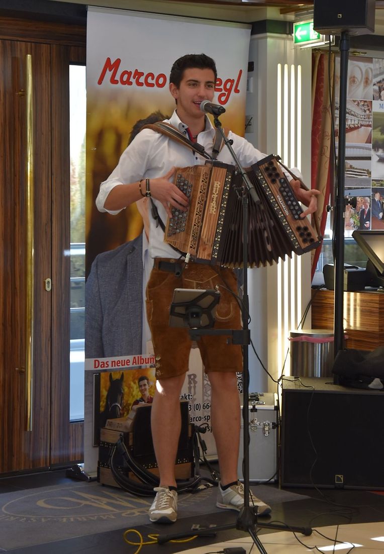 Auch Marco Spiegl, der junge Nachwuchskünstler aus Österreich gab alles, konnte mit seinem musikalischen Talent überzeugen und sorgte in den Pausen von Rudy für supertolle Stimmung.