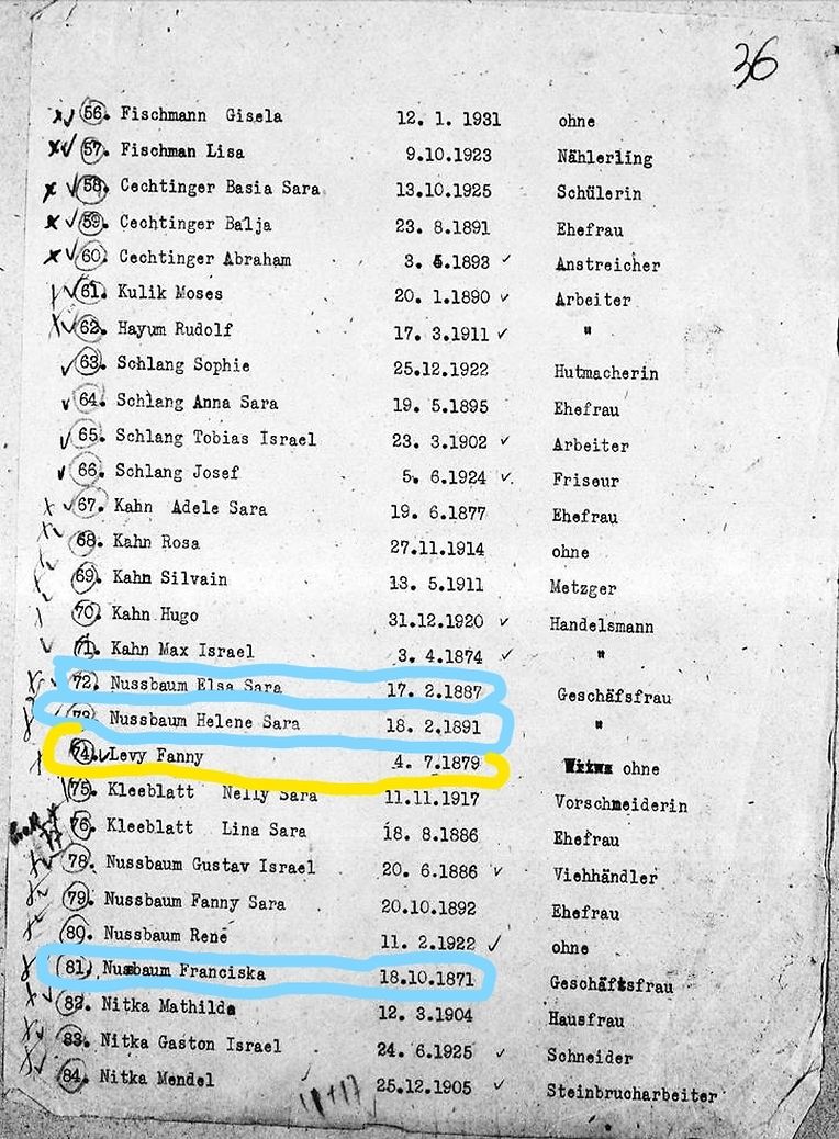 Do ass och e Stolpersteen verluecht ginn fir Fanny Levy-Nussbaum. Hunn du schnell a mengen Ënnerlagen aus menge jorelaange Recherchen iwwer déi jiddesch Familljen, déi zu Konsdref gewunnt hunn nogesicht an erausfonnt, dat Fanny Nussbaum enk Verbindungen mat Konsdref hat duerch hire Mann, den Albert Levy awer och duerch hire Papp an hir Mamm.