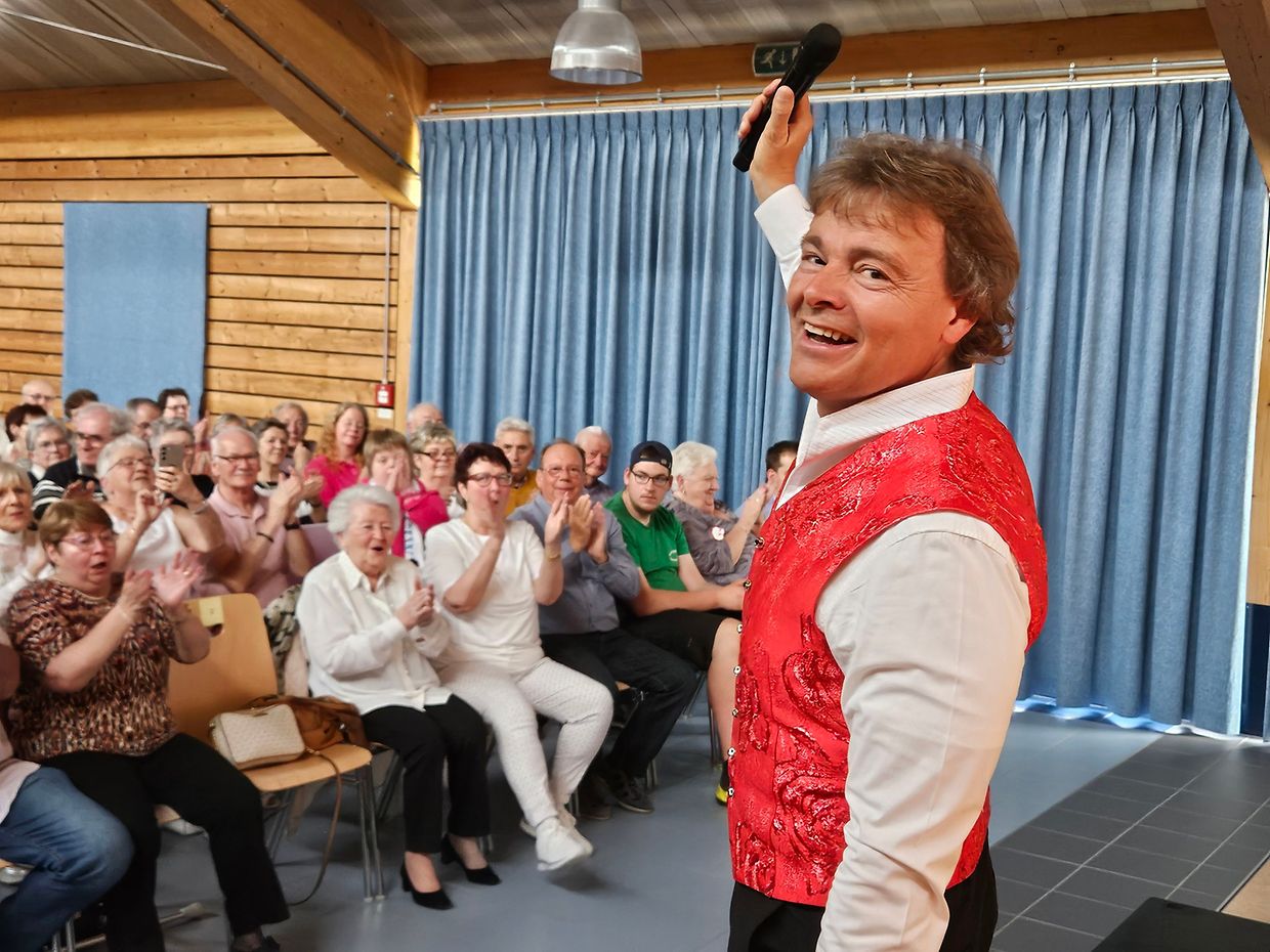 Rudy Giovannini, der in den letzten Monaten fast täglich im Deutschen Musik Fernsehen und anderen TV-Sender zu sehen war und ist, begeisterte das Publikum von der ersten bis zur letzten Minute mit bekannten, volkstümlichen Liedern, klassischen Melodien und amüsanten Geschichten zwischendurch. Mit seiner witzigen und charmanten Moderation erwies sich Rudy wieder einmal mehr als hervorragender Entertainer und da er die Nähe zum Publikum liebt, mischte er sich des Öfteren unter die Zuschauer, was bestens ankam und die Besucher in der ausverkauften Halle konnten bei schönster und abwechslungsreicher Musik und Entertainment für ein paar Stunden dem Alltag entfliehen.