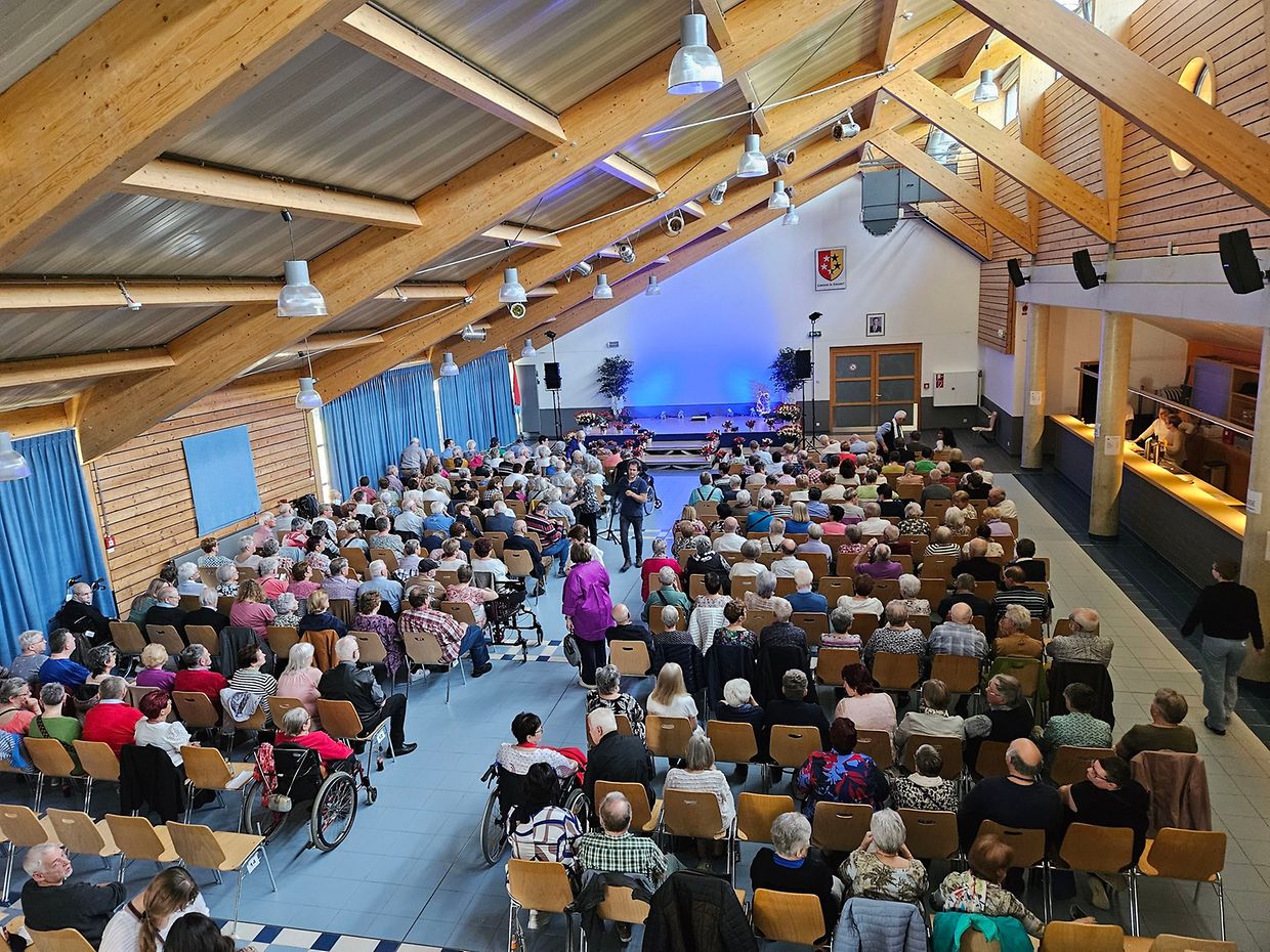 Samstagnachmittag, 13. April 2024. Frühlingshaftes, fast sommerliches Wetter und rund um das Consdorfer Centre polyvalent "Kuerzwénkel" war kein Parkplatz mehr frei. Menschen aus dem In- und Ausland strömten zum Konzert des Südtiroler Sängers Rudy Giovannini. So konnte Präsidentin Brands Cecile neben zahlreichen Mitgliedern und Freunden auch dieses Jahr wieder Freunde und Fans aus Belgien, Deutschland und Frankreich begrüßen, welche extra angereist waren, um ihren Südtiroler Starkünstler live zu erleben und um einige Tage in unserer schönen Region zu verbringen. Als geladenen Gäste konnte die Präsidentin auch den Bürgermeister Herr Bermes Marco, sowie einigen Einwohner aus der „Cipa“ Consdorf begrüßen.