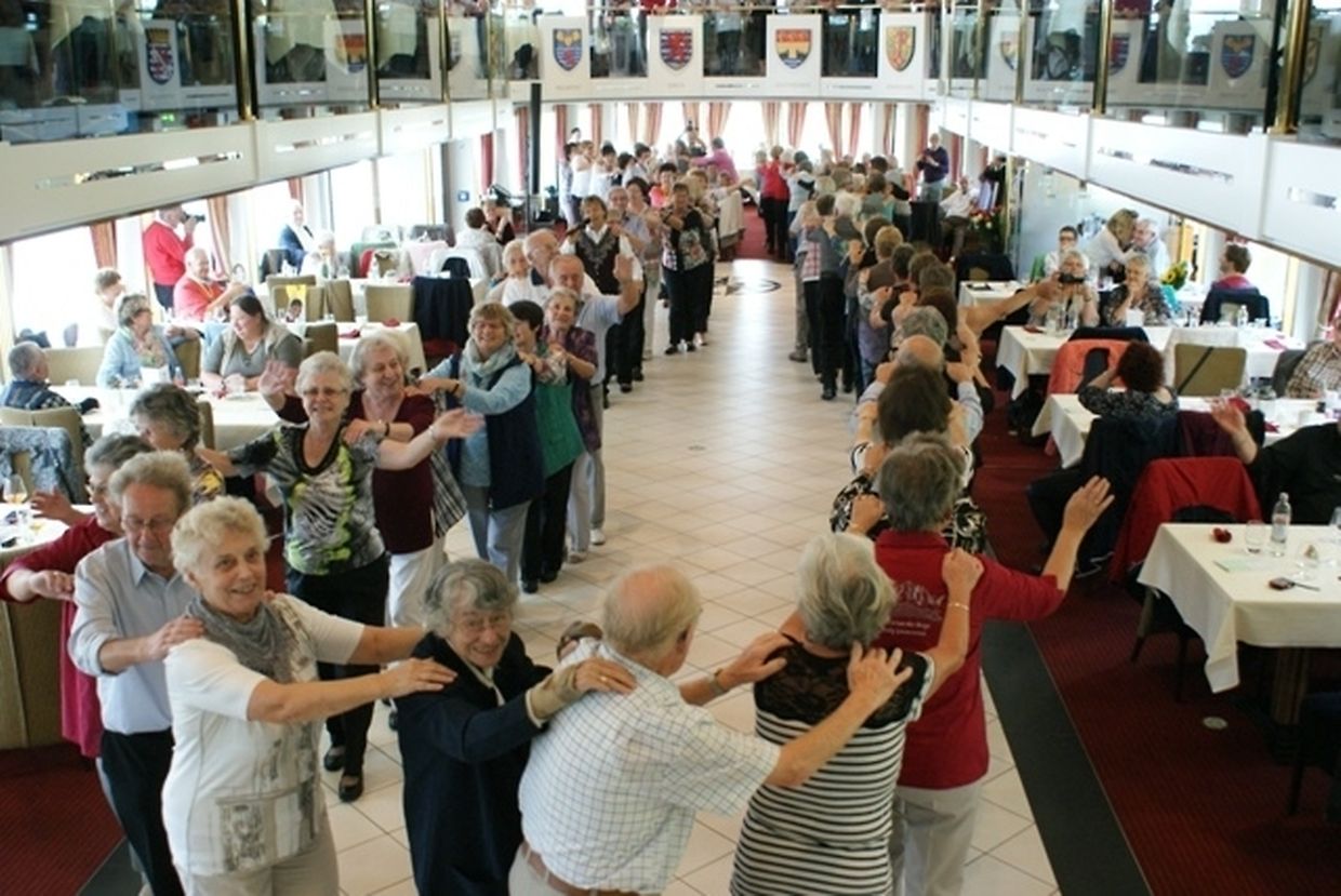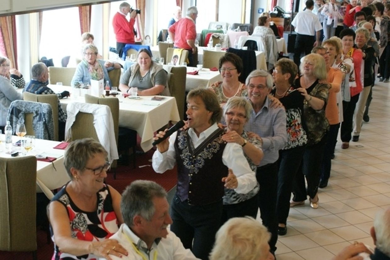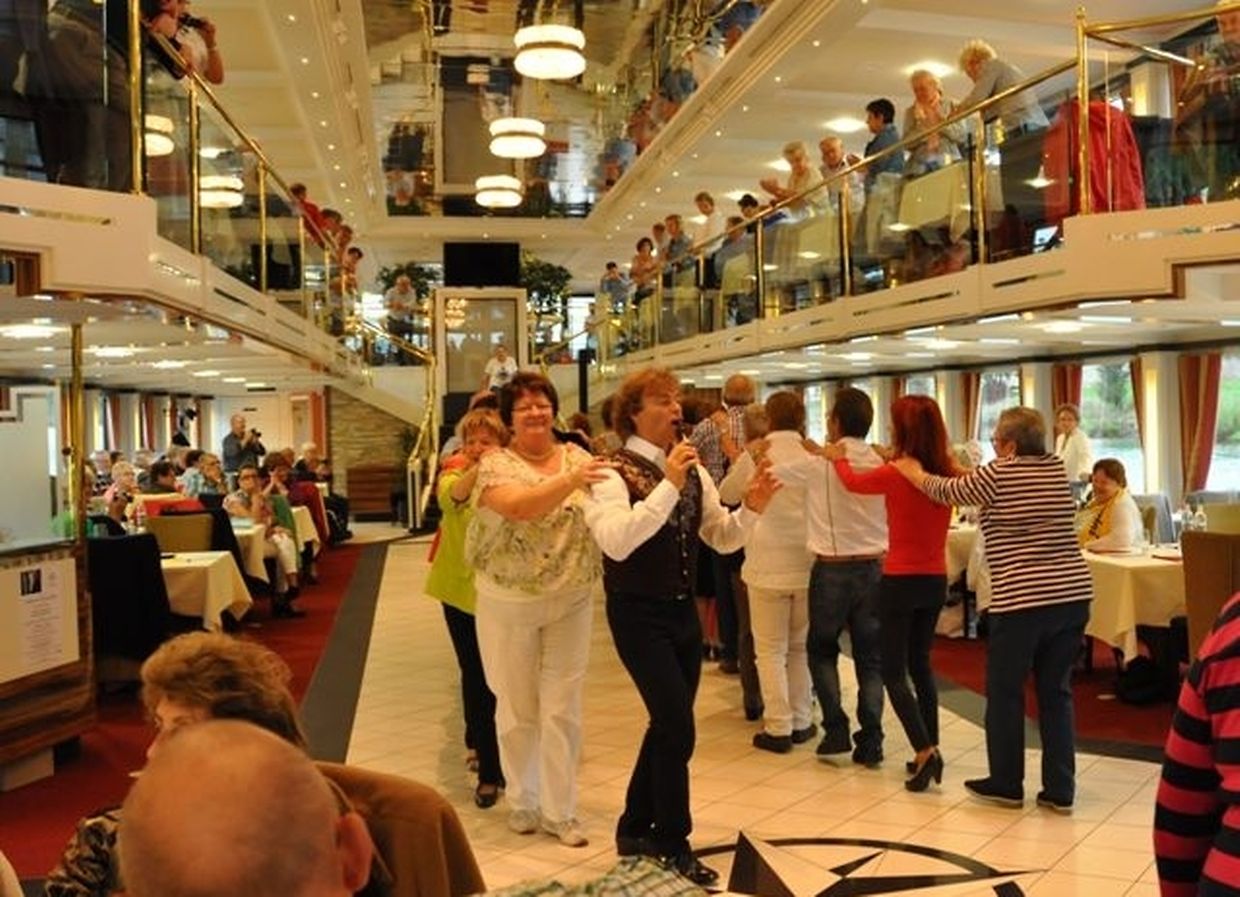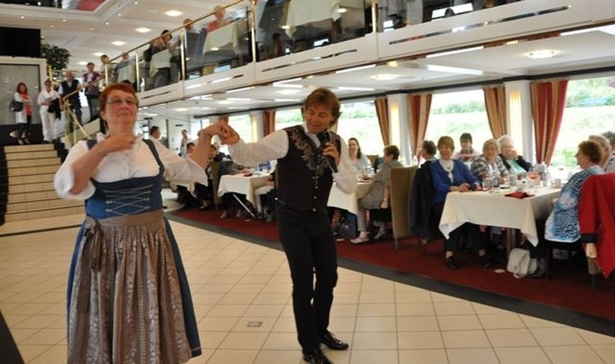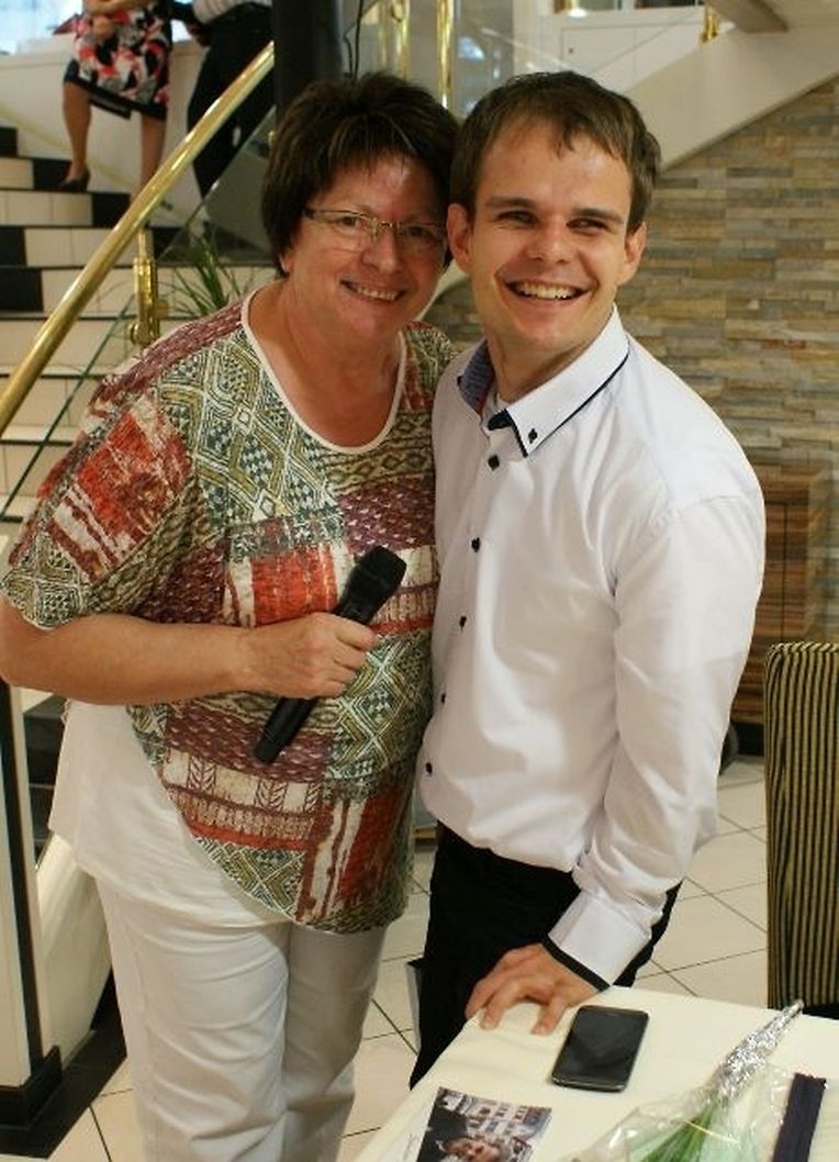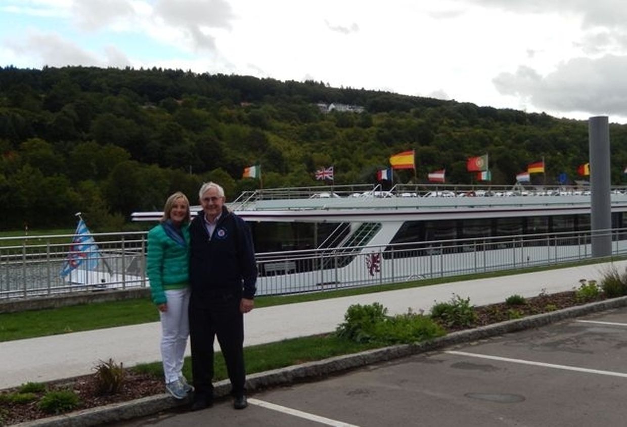 In meiner Eigenschaft als Präsidentin konnte ich an beiden Tagen neben unseren Mitgliedern, welche sich zahlreich eingefunden hatten, auch die Amiperas aus Cruchten und den Sparverein „de leschte Sou“ aus Oberbesslingen und vielen Freunden aus ganz Luxemburg begrüßen. Neben den vielen angereisten Gästen aus allen Teilen Deutschland konnte ich heuer wieder Ute Fritzsch, die zum 2.ten Mal mit Ihrem Fan Club im vollbesetzten Bus aus dem Erzgebirge und mit unzähligen Rosen im Gepäck angereist war um auf unserer Moselrundfahrt mit Rudy Giovannini dabei zu sein. Sebastian Depling, der gehbehinderte junge Mann aus der Leipziger Gegend war mit Familie und Freunden angereist um mit seinem Vorbild Rudy zu singen, denn diese gemeinsame musikalischen Auftritte geben Sebastian Kraft und Lebensmut um mit seinem Schicksalsschlag besser und leichter um zugehen. Viele liebe und treue Freunde waren aus Belgien extra angereist um mit Rudy auf der Mosel zu singen und zu feiern und so herrschte trotz Wind und Regen eitel Sonnenschein und eine supertolle Stimmung während beiden Tagen an Bord der MS „Princesse Marie Astrid“.