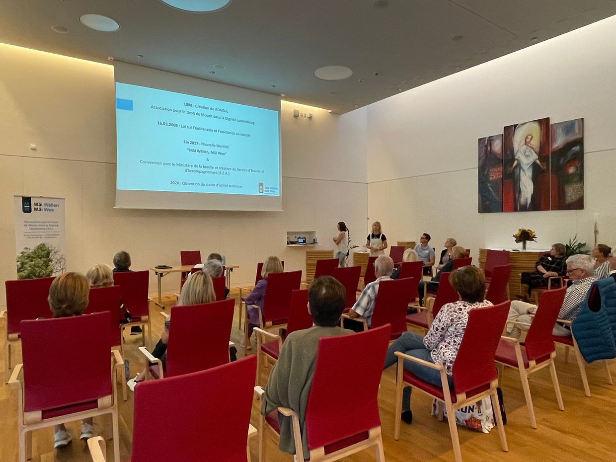 Den Owend gouf beräichert duerch Präsens vun der Associatioun „Mäi Wëllen Mäi Wee“. Mir soen de Representanten e grousse Merci fir hir flott Präsentatioun an ausféierlech Informatiounen. Eis Invitéeën hu mat groussem Interessi nogelauschtert.