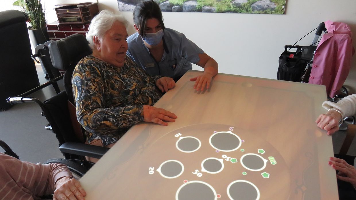 Die Tovertafeln bieten unseren Bewohnern mit kognitiven Beeinträchtigungen die Möglichkeit, ein breiteres Spektrum an Aktivitäten zu nutzen, die innovativ und an ihre erhaltenen Fähigkeiten angepasst sind. Die Spiele sind in die Maschinen integriert und werden in Form von interaktiven Lichtprojektionen präsentiert. Die Lichtprojektionen können auf einer beliebige Oberfläche, beispielsweise einen Tisch, angezeigt werden und ziehen die Aufmerksamkeit der Bewohner auf sich. Die Tovertafeln erzeugen Bilder und Geräusche und reagieren dabei auf die kleinsten Bewegungen von Händen und Füssen der Bewohner. Die unterschiedlichen Spiele sind auf die 5 Stadien einer Demenz angepasst. Die Spiele eignen sich somit sowohl für kognitiv fittere Bewohner als auch für Bewohner mit einer ausgeprägten dementiellen Erkrankungen. Damit bieten die Tovertafeln ein breites Einsatzspektrum und können sowohl einzeln mit einem Bewohner, als auch in kleinen Gruppen unter Aufsicht einer Person aus dem Team (Pflegekräfte, Therapeuten, Erzieher/Innen) oder mit einem Familienmitglied genutzt werden. Die Tovertafeln schaffen somit eine weitere Möglichkeit der Förderung von Bewegung und sozialer Interaktion im Alltag unserer Bewohner. Die regelmäßige Anwendung bei den Bewohnern hat einen günstigen Einfluss auf verschiedene Bereiche des täglichen Lebens: körperliche Aktivität, kognitive Stimulation, Intensität oder Häufigkeit des Auftretens von demenzbedingten Verhaltensstörungen, soziale Bindung und sensorische Stimulation.