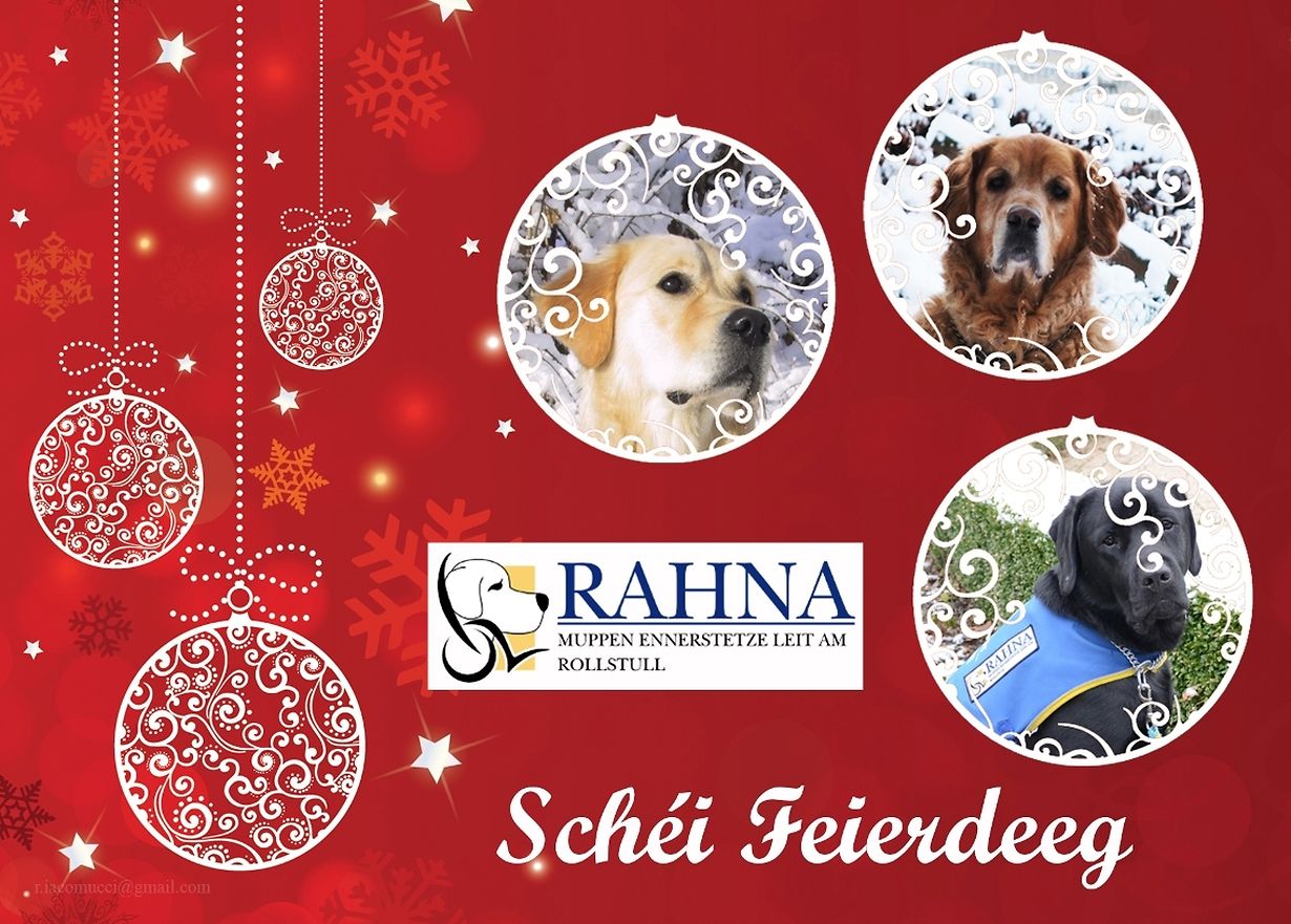 Contern Rahna 'Muppen ënnerstëtze Leit am Rollstull' Rahna a.s.b.l. Veröffentlicht am Donnerstag, 24. Dezember 2015 um 09:48 RAHNA wënscht all senge Frënn schéi Feierdeeg an e glécklecht Joër 2016. E ganz groussen MERCI un Iech, dass Dir et méijlech maacht eisen Alldaag ze erliichteren. Unpassenden Inhalt angeben Weitere Neuigkeiten von Rahna a.s.b.l. > Nobele Geste bei den 'Fraen a Mammen Bettenduerf' 06.07.15 Bettendorf GV mit Sommerfest von RAHNA 'Muppen ënnerstëtze Leit am Rollstull' 20.05.15 Contern Generalversammlung der Kulturtrupp a.s.b.l 27.04.15 Gilsdorf Rahna 'Muppen ënnerstëtzen Leit am Rollstull' 10.12.14 Contern Jahresvollversammlung Rahna 'Muppen ënnerstëtzen Leit am Rollstull' 06.05.14 Oetringen