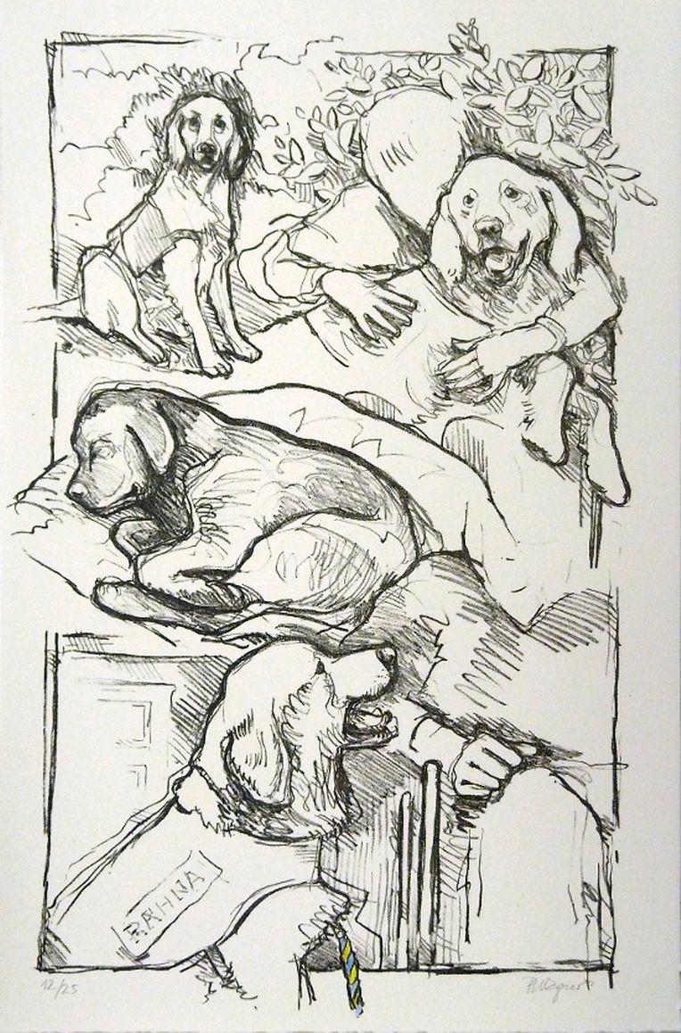 Sind Sie auf der Suche nach einem originelem Weihnachtsgeschenck? Rahna 'Muppen ënnerstëtzen Leit am Rollstull' besitzt noch einige wertvolle Lithographien, die der bekannte luxemburger Künstler Pit Wagner (Buch 'de Bommeleeër Prozess') anlässlich des 10jährigen Geburtstages des Vereins kreiert hat. Es gibt 2 Modelle 'A' - 2 Hunde 'B' - 4 Hunde Preis 150€/Stück - der integrale Erlös geht an Rahna! Bestellen kann man Sie bei www.rahna.lu oder 621636661 (Rahna)