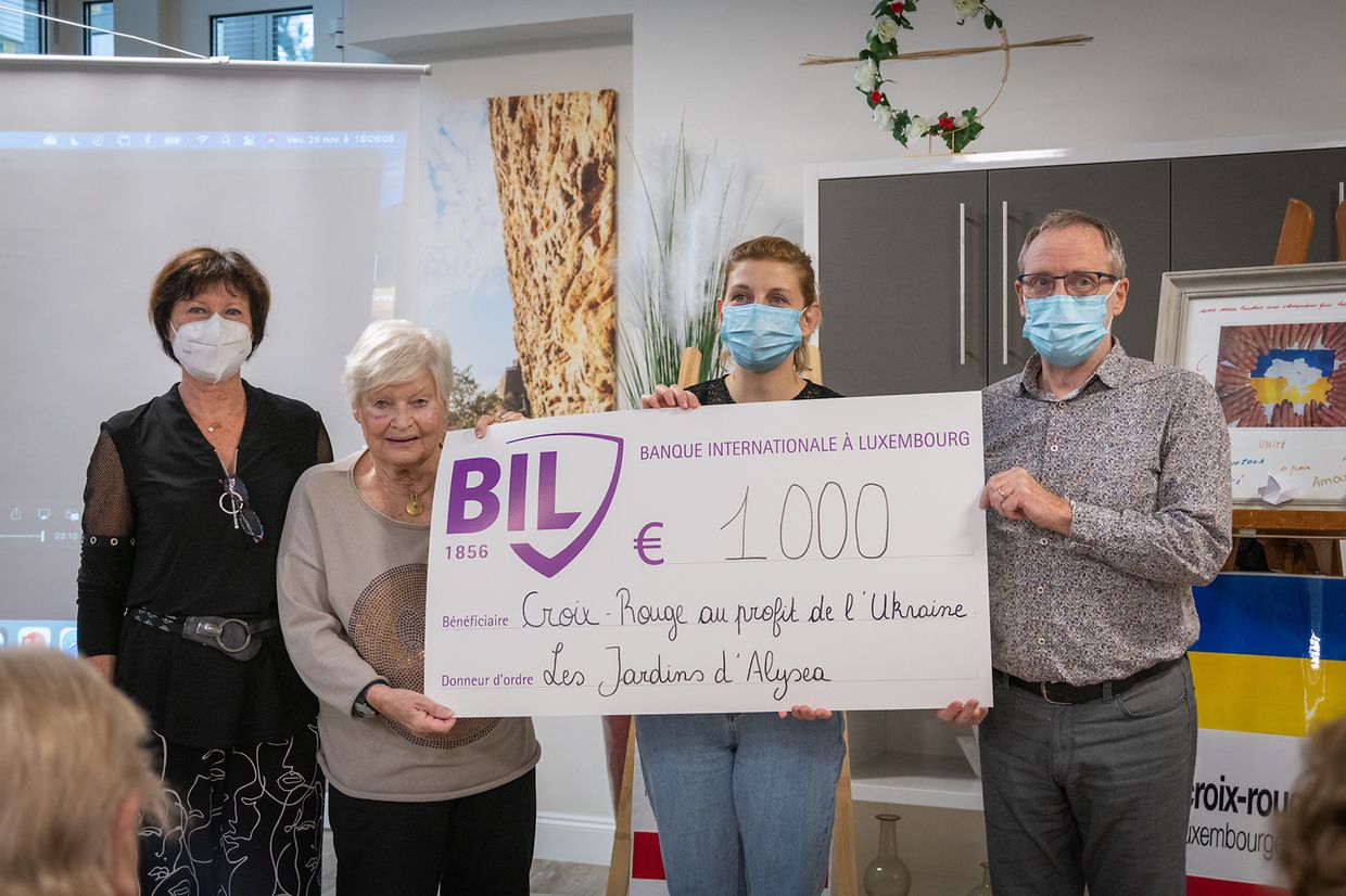 Seit Anfang der Unruhen in der Ukraine und der Ankunft der ukrainischen Flüchtlinge auf Luxemburger Boden, war es höchste Priorität des Jardins d’Alysea und dessen Bewohnerinnen und Bewohner diese gut zu empfangen und zu unterstützen. Im April hat das Pflegeheim das Rote Kreuz kontaktiert, um sich über die Bedürfnisse der