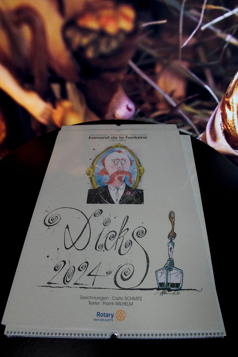 Zusätzlich zu diesen Feierlichkeiten startete der Rotary Club Esch in Zusammenarbeit mit dem luxemburgischen Karikaturisten Carlo Schmitz eine Wohltätigkeitsinitiative. Ein außergewöhnlicher künstlerischer Kalender, der mit Erklärungen von Frank Wilhelm zu Dicks Leben vervollständigt wird, wurde zum Verkauf angeboten. Die gesamten Einnahmen aus dem Verkauf dieser Kalender werden an die humanitären Organisationen „Médecins du Monde", „Association Trisomie-21" und „D'Stëmm vun der Strooss" gespendet.