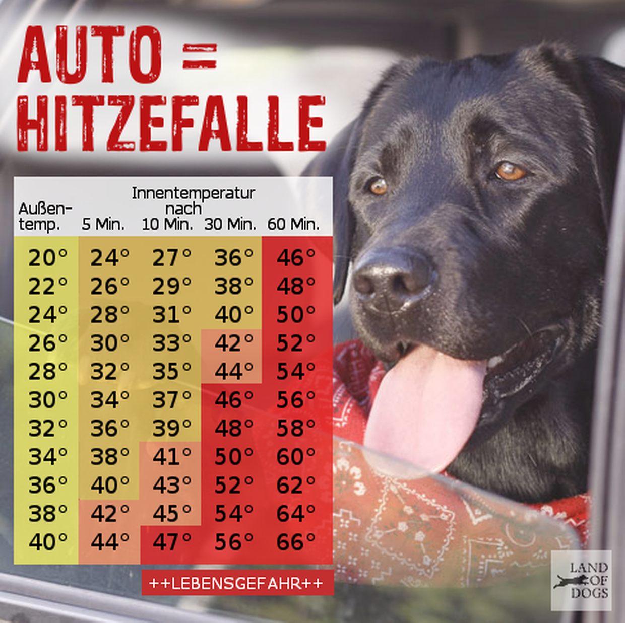 Sowohl Katzen als auch Hunde können einen Hitzschlag erleiden. Da die größte Gefahr jedoch in einem in der Sonne geparkten Auto besteht, sind weitaus mehr Hunde als Katzen davon betroffen. „Dabei reichen schon Außentemperaturen von 20 Grad, um bei direkter Sonneneinstrahlung des Innere des Wagens in wenigen Minuten auf über 50 Grad aufzuheizen“, erklärt Philip McCreight von TASSO. „Für den Hund bedeutet das akute Lebensgefahr.“