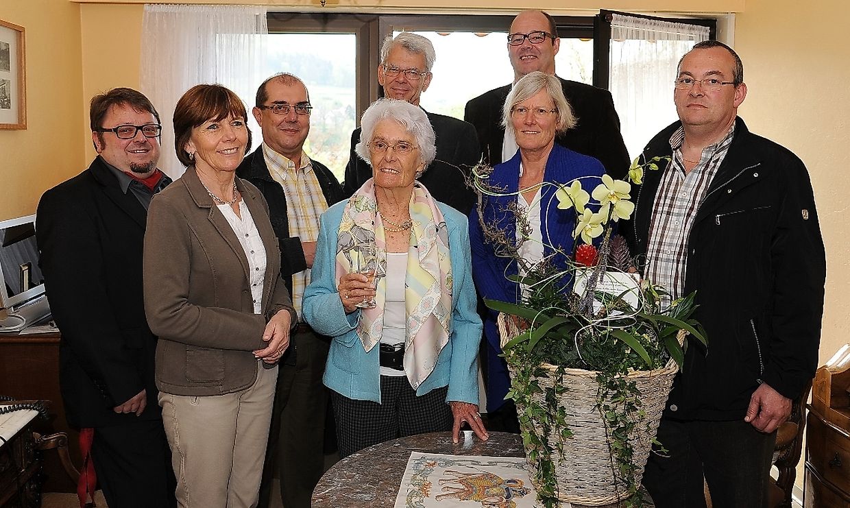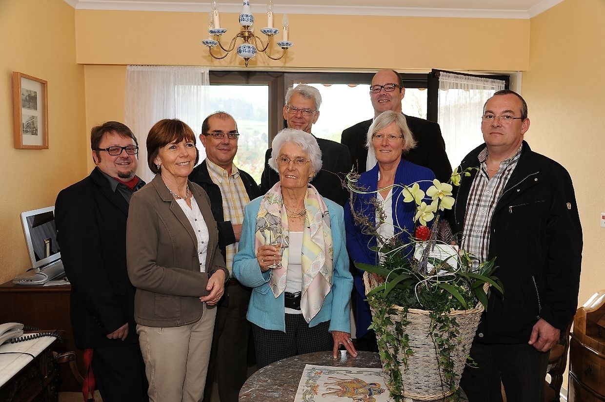 Mat besonnescher Freed a bei gudder Gesondheet konnt d'Madame Jeanne Müller- Ketter , déi hiren Liewensoewend zënter 2008 am CIPA- Résidence du Parc - zu Dikrich verbrëngt, op 90 Joer erfëlltes Liewen zerëck kucken. De Buergermeeschter Claude Haagen mat sengen zwéin Schëffen René Kanivé an Claude Thill woren haut Freideg bei der Jubilarin lanscht komm, fir dem gut gelaunten Geburtsdagskand zesummen mat der Famill an der Direktioun vum Haus mat schéine Blummen zum 90. Gebuertsdag ze gratuléieren.