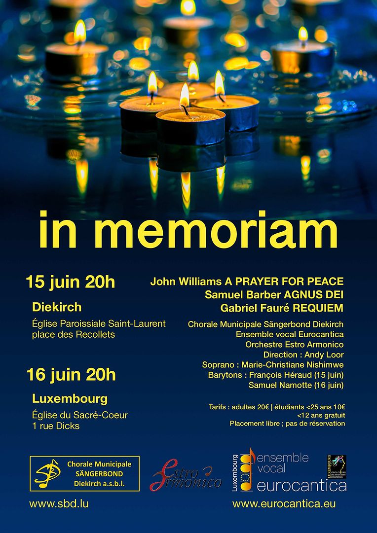 Am Kader vum Fauré sengem Doudesdag gedenke mir och deene villen onschëllegen Affer vum Krich, deenen hiert Leed a Verloscht onmoosseg ass. Dëse Concert soll eis drun erënneren, datt och an Zäite vu Konflikt an Tragedien d'Hoffnung op Fridden a Versönung ni verschwannen. D’Musek soll eis verbannen an eis inspiréiere fir eng Welt ze plädéieren, wou onschëlleg Affer vum Krich ni vergiess ginn a wou hir Erënnerungen a Fridden an Harmonie weider liewen.
