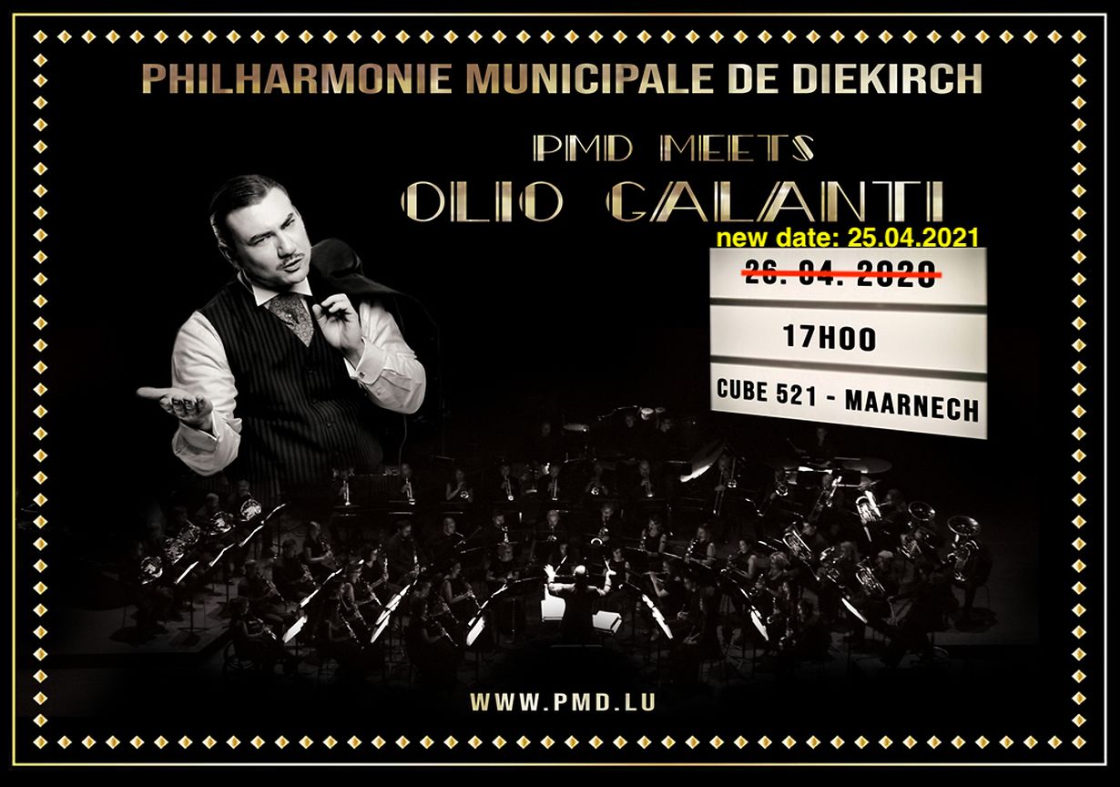 Diekirch PMD meets Olio Galanti - neien Datum! Philharmonie Municipale de Diekirch Veröffentlicht am Mittwoch, 29. April 2020 um 14:27 Diekirch, Luxemburg De Concert "PMD meets Olio Galanti", deen duerch d'Mesure'ë géint de Covid-19 leider net konnt um 26. Abrëll 2020 gespillt ginn, gëtt de 25. Abrëll 2021 zu Maarnech am Cube521 nogeholl. weider Info's & Ticketen op www.pmd.lu Unpassenden Inhalt angeben Weitere Neuigkeiten von Philharmonie Municipale de Diekirch > Concert PMD & Friends 31.08.23 Diekirch Concert Hommage à Théo Schalz 13.03.23 Diekirch Concert PMD & Friends 03.11.22 Diekirch Concert PMD meets Olio Galanti 05.07.22 Diekirch PMD Junior's Concert 24.03.22 Diekirch