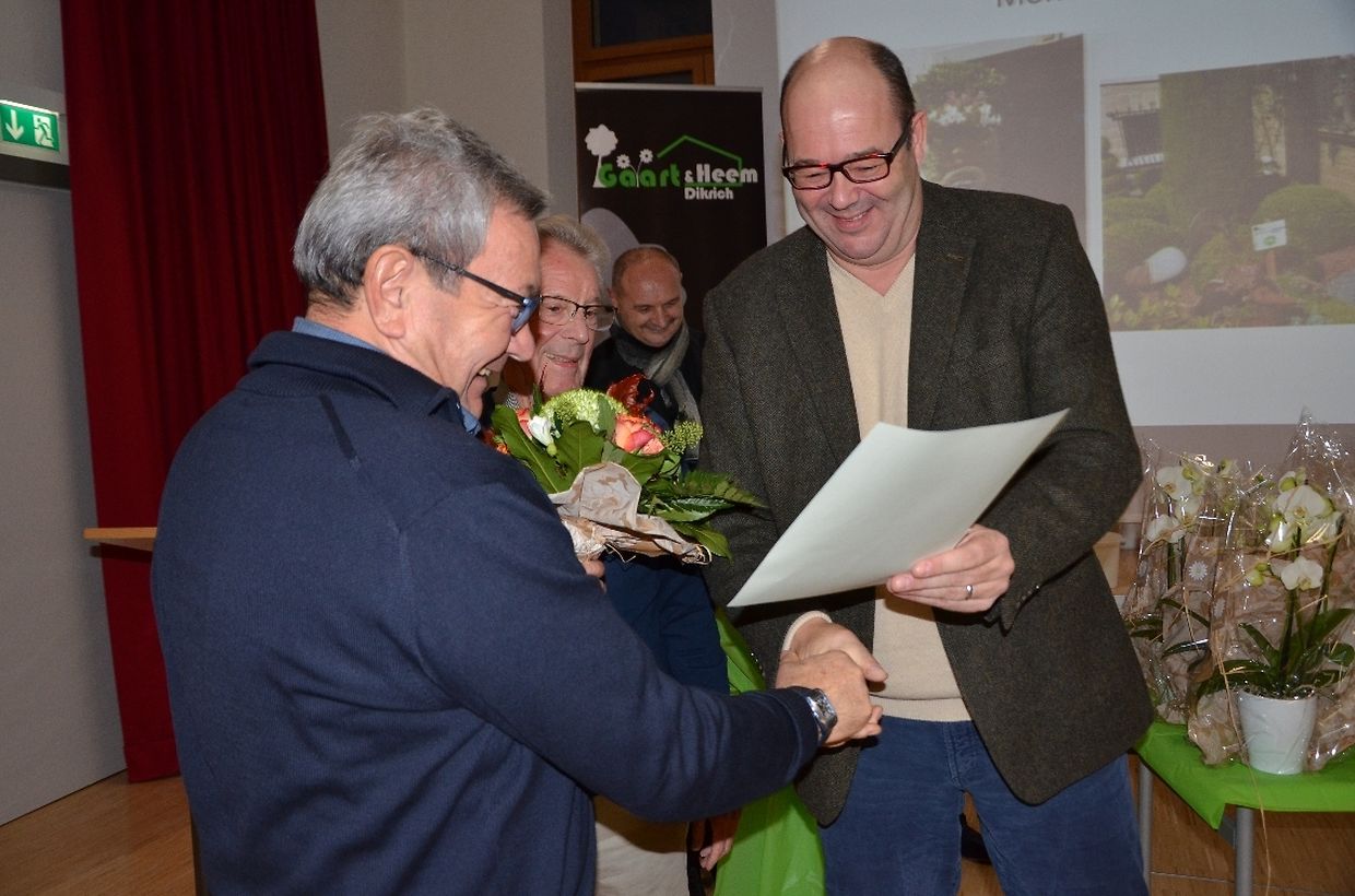 Am Fréijar 2016 waren di Dikricher Lett opgeruff ginn vir hir Viirgäertercher, Heiserentreeën, Balkonen a Fënsteren mat Blummen ze verschéineren. Während dem Juli an dem August hunn 3 Comitésmemberen vum Gaart an Heem Dikrich puermol d ‘Ronn gemaach fir bei deenen, déi sich ugemellt haten, eng Bewäertung ze maachen.