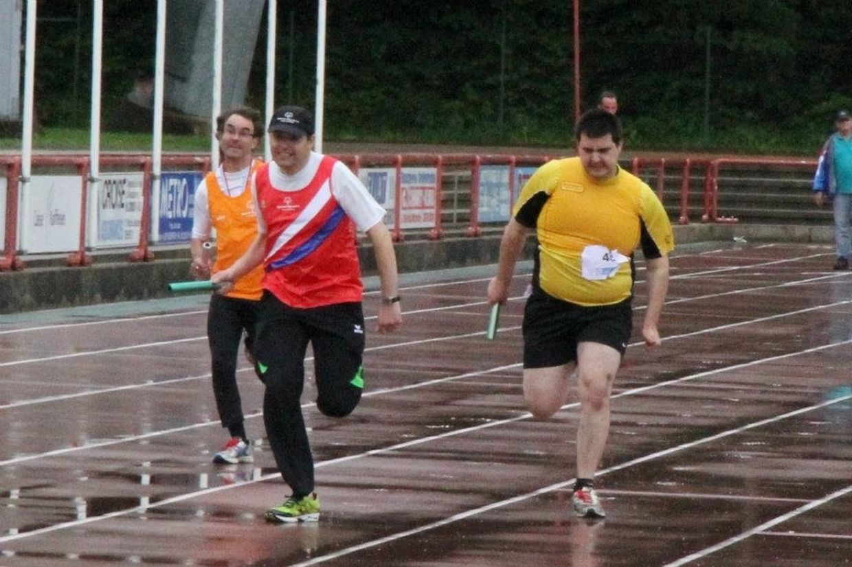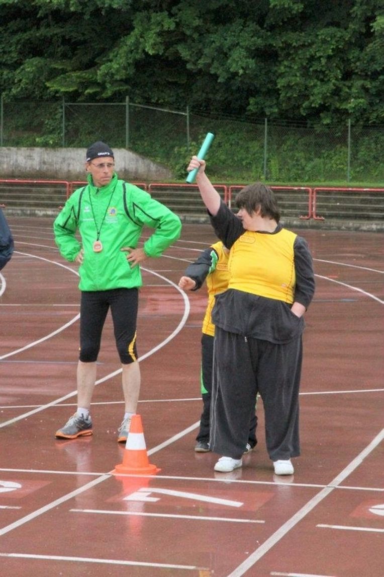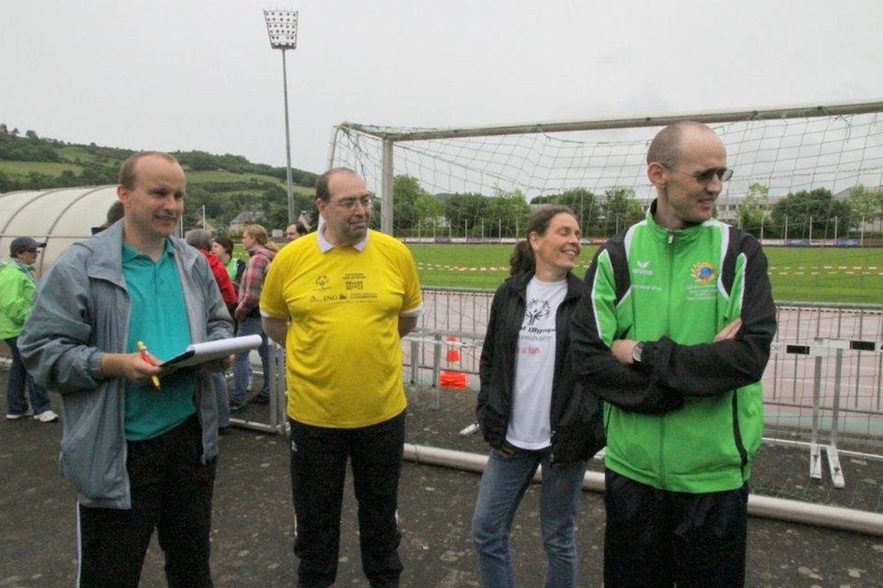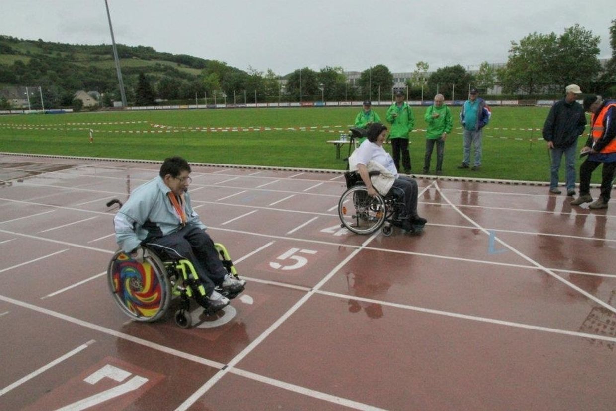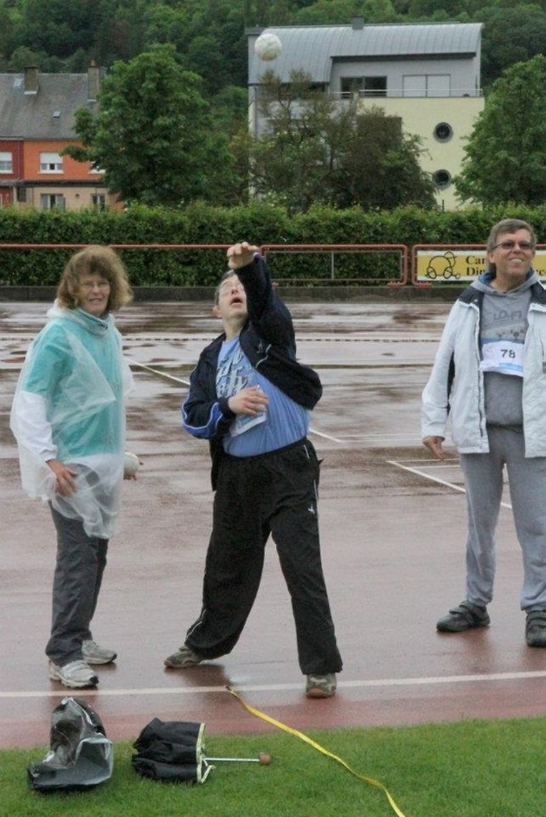 "Hab Sonne im Herzen" - so in etwa kann man die Gefühlslage der rund 90 Sportler von Special Olympics Luxemburg und einer kleinen Delegation aus St. Dizier sowie ihrer Betreuer bei den verregneten Leichtathletiksmeisterschaften in Diekircher Stadium zusammenfassen. Schlechte Laune kam trotz der schlechten Wetterlage überhaupt keine auf, ganz im Gegenteil. Ab 9:30 Uhr wurde mit viel Einsatz um die Medaillen gekämpft. Auf dem Programm standen neben den Gehwettbewerben (von 50 bis 400 Meter) und den Läufen (von 50 bis 1500 Meter) auch Weitsprung (mit oder ohne Anlauf), Kugelstoßen und Ballwerfen. Auch für die Rollstuhlfahrer gab es Wettkämpfe über 100 Meter und 30 Meter Slalom. Manch gute Leistungen kamen in den einzelnen Finalen zustande und wurden dementsprechend mit viel Applaus belohnt. In Zukunft soll mit dem Mini-Speer ein weiterer Wettbewerb angeboten werden. Im Hinblick auf die nächsten Wettkämpfe wurde durch den Juniorenmeister im Speerwerfen, Nikita Thill, eine Einführung in die Handhabung dieses Sportgerätes getan. Mit spannenden Staffelrennen über 4x50 Meter und 4x100 Meter wurde der Tag gegen 17 Uhr abgeschlossen. Der Pokal des Tages ging an die Gäste aus Frankreich. Freudestrahlende Teilnehmer mit ihren gewonnenen Medaillen verliessen das Diekircher Laufoval. Rund 40 freiwillige Helfer waren die Garanten für einen gelungenen Tag. Das nächste Meeting in der Leichtathletik findet im Herbst "indoor" in der Coque statt.