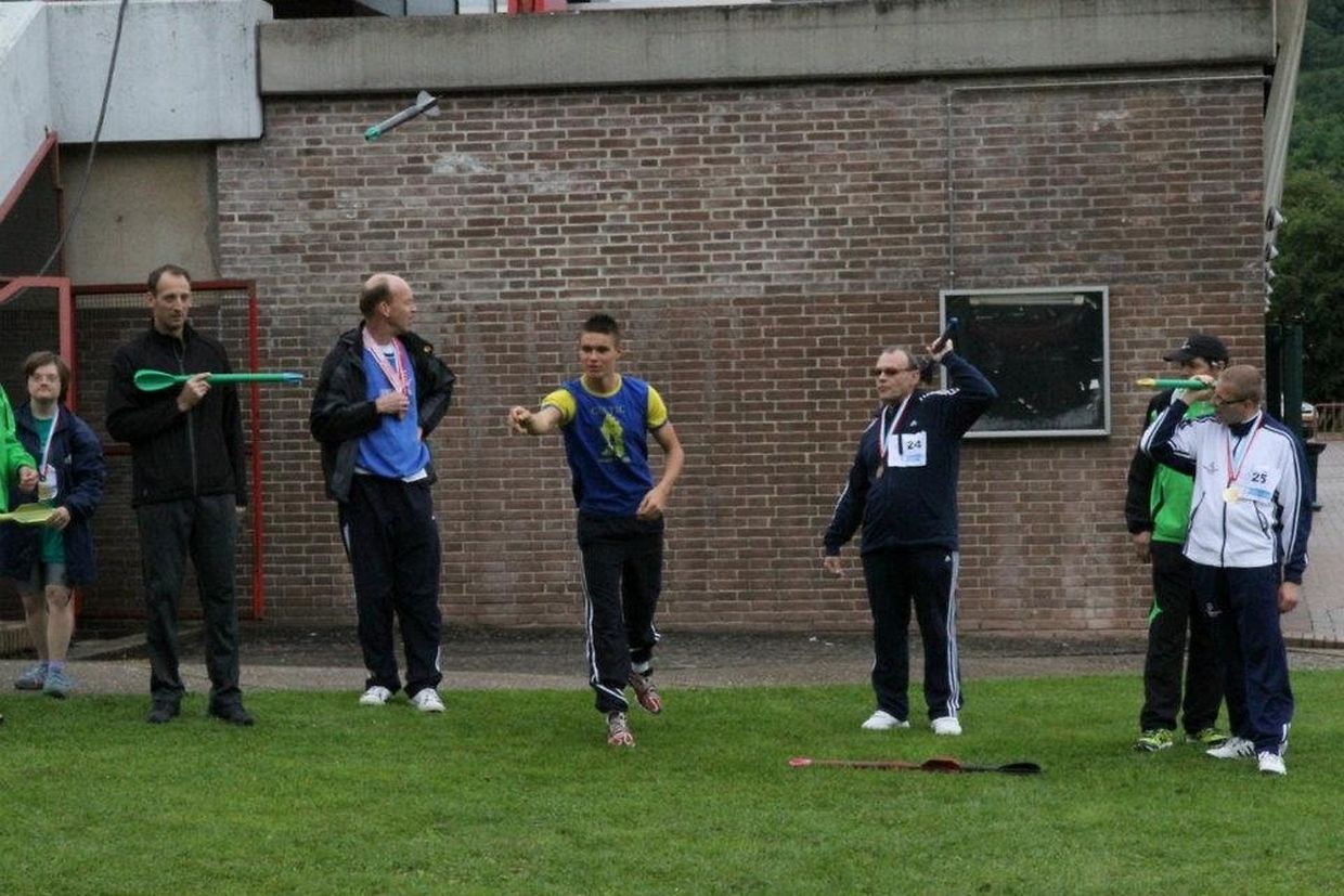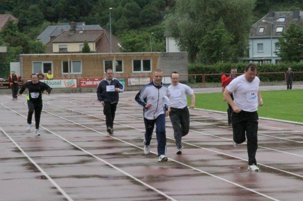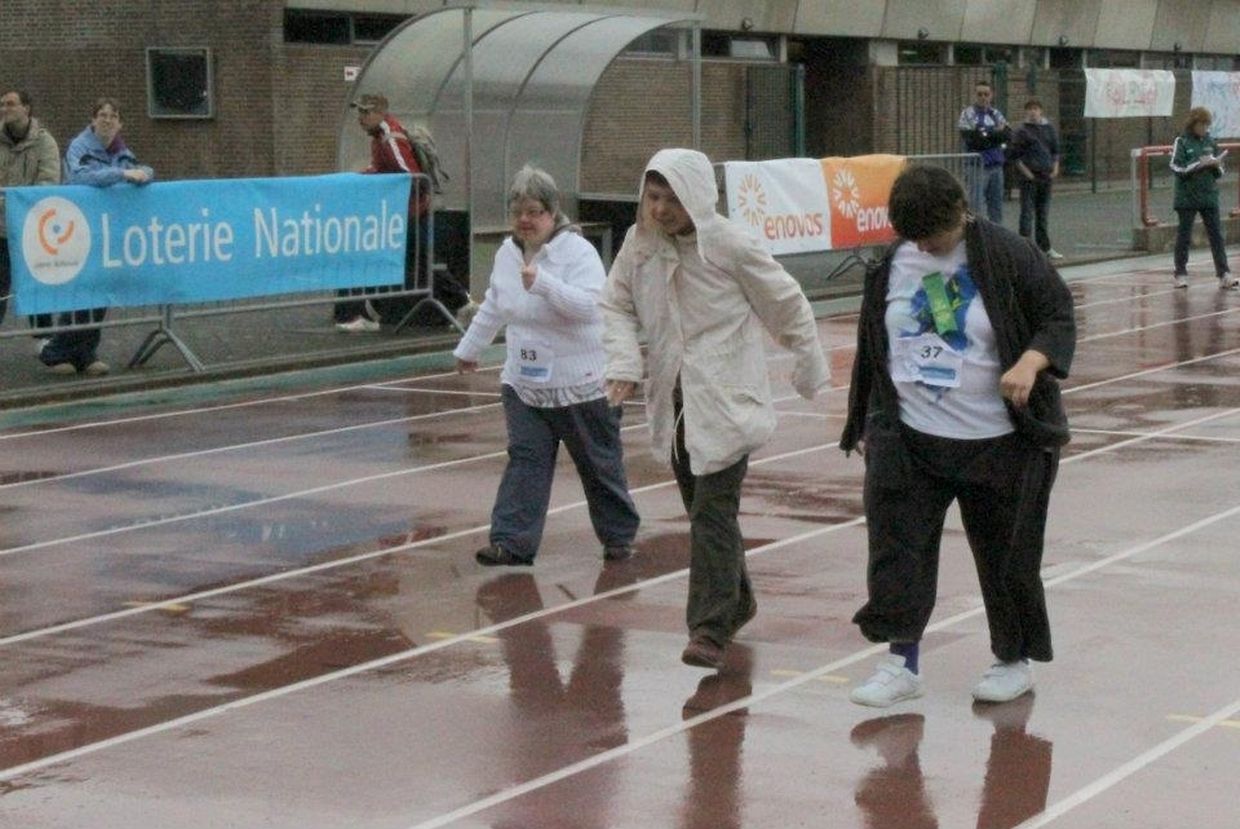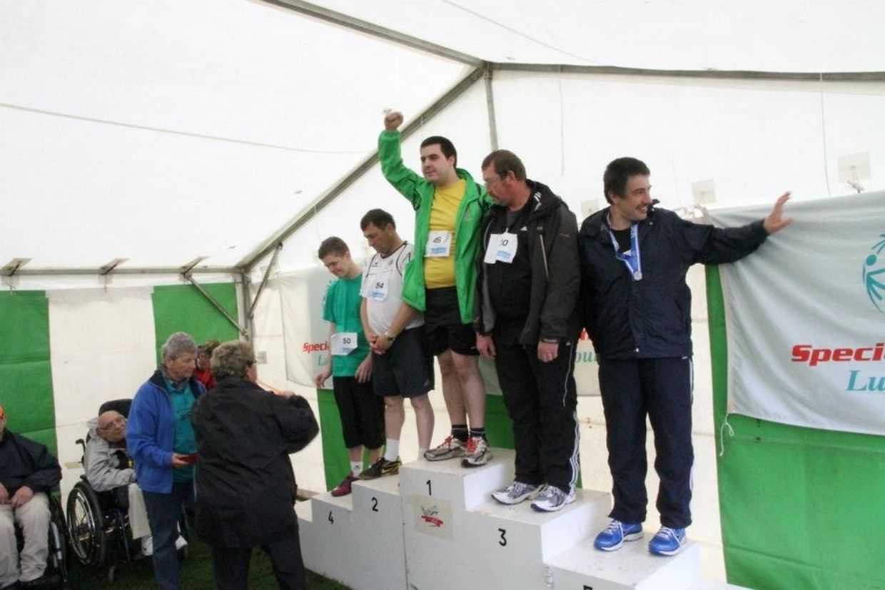 "Hab Sonne im Herzen" - so in etwa kann man die Gefühlslage der rund 90 Sportler von Special Olympics Luxemburg und einer kleinen Delegation aus St. Dizier sowie ihrer Betreuer bei den verregneten Leichtathletiksmeisterschaften in Diekircher Stadium zusammenfassen. Schlechte Laune kam trotz der schlechten Wetterlage überhaupt keine auf, ganz im Gegenteil. Ab 9:30 Uhr wurde mit viel Einsatz um die Medaillen gekämpft. Auf dem Programm standen neben den Gehwettbewerben (von 50 bis 400 Meter) und den Läufen (von 50 bis 1500 Meter) auch Weitsprung (mit oder ohne Anlauf), Kugelstoßen und Ballwerfen. Auch für die Rollstuhlfahrer gab es Wettkämpfe über 100 Meter und 30 Meter Slalom. Manch gute Leistungen kamen in den einzelnen Finalen zustande und wurden dementsprechend mit viel Applaus belohnt. In Zukunft soll mit dem Mini-Speer ein weiterer Wettbewerb angeboten werden. Im Hinblick auf die nächsten Wettkämpfe wurde durch den Juniorenmeister im Speerwerfen, Nikita Thill, eine Einführung in die Handhabung dieses Sportgerätes getan. Mit spannenden Staffelrennen über 4x50 Meter und 4x100 Meter wurde der Tag gegen 17 Uhr abgeschlossen. Der Pokal des Tages ging an die Gäste aus Frankreich. Freudestrahlende Teilnehmer mit ihren gewonnenen Medaillen verliessen das Diekircher Laufoval. Rund 40 freiwillige Helfer waren die Garanten für einen gelungenen Tag. Das nächste Meeting in der Leichtathletik findet im Herbst "indoor" in der Coque statt.