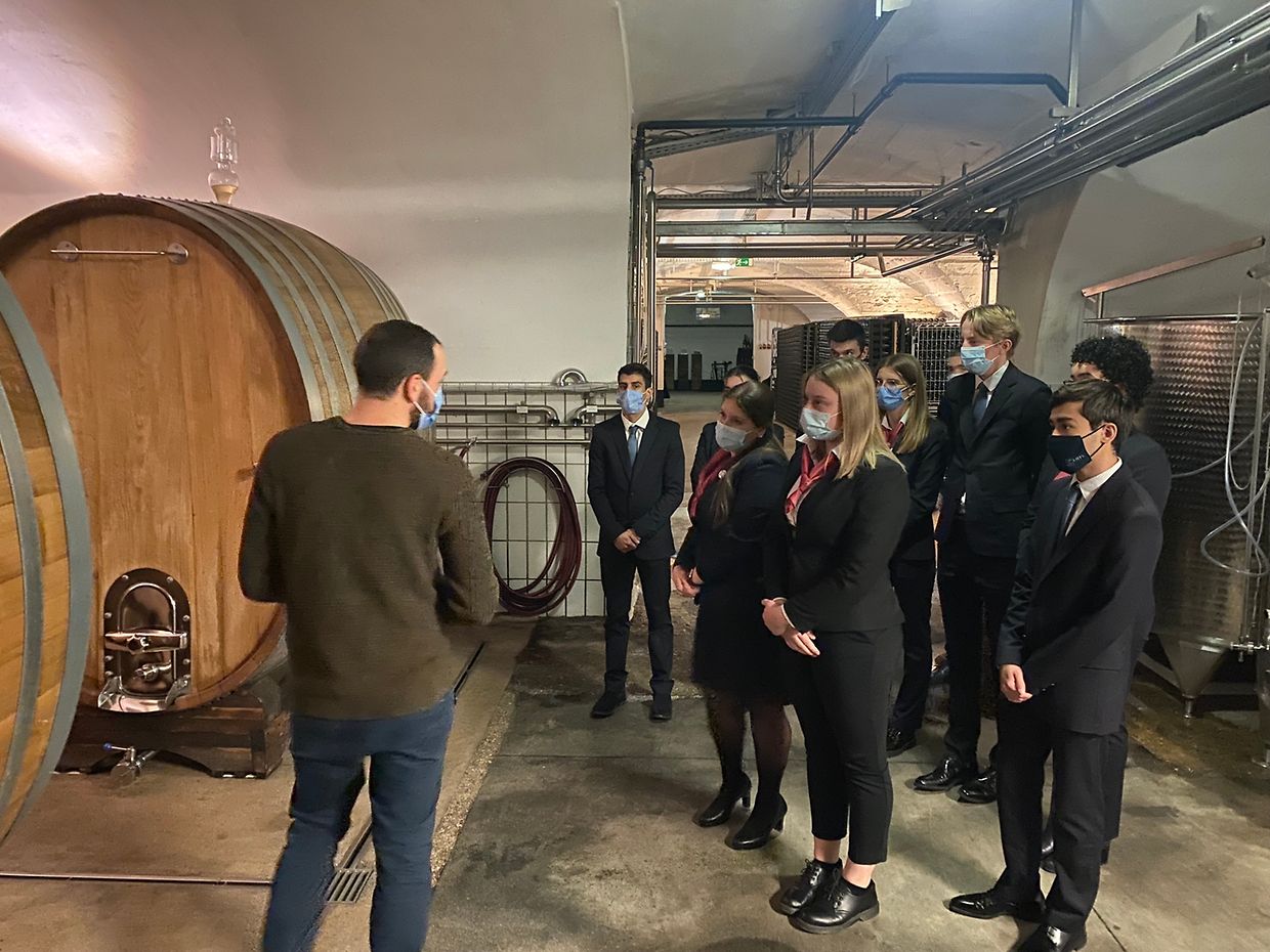 Dans le cadre de leur cours intitulé « Approfondissement de techniques en restauration », les 16 et 23 novembre 2021, les classes de 2GGH1 et 2GGH2 ont à tour de rôle eu l’occasion de découvrir les Caves Bernard‑Massard, à Grevenmacher.
