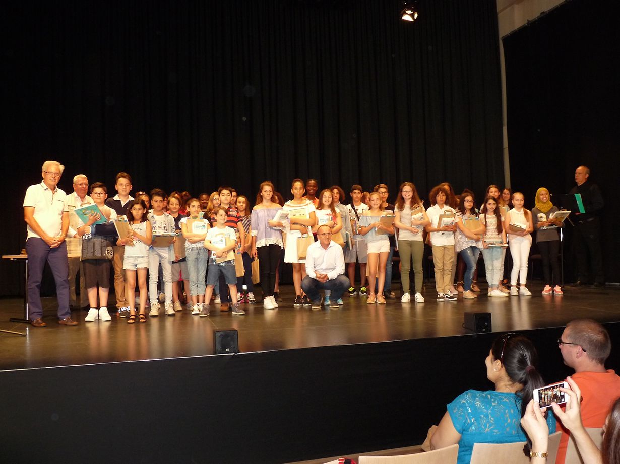Les Amitiés Françaises de Differdange & vallée de la Chiers en coopération avec le Conseil communal ont remis le 4.7.2017 au centre culturel régional "Aalt Stadhaus" en présence du bourgmestre, des parents, enseignants et représentants Caritas à 38 élèves méritants en langue française du cycle 4.2 ainsi qu'à 5 élèves immigrés et scolarisés une sélection de livres de valeur comme récompense respectivement prix d'encouragement