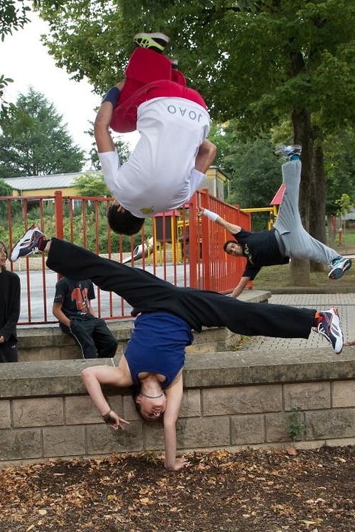 Um grupo de "traceurs" – praticantes de Yamakasi ou "parkour" – fez uma demonstração na escola primária do centro de Differdange, na sexta-feira.