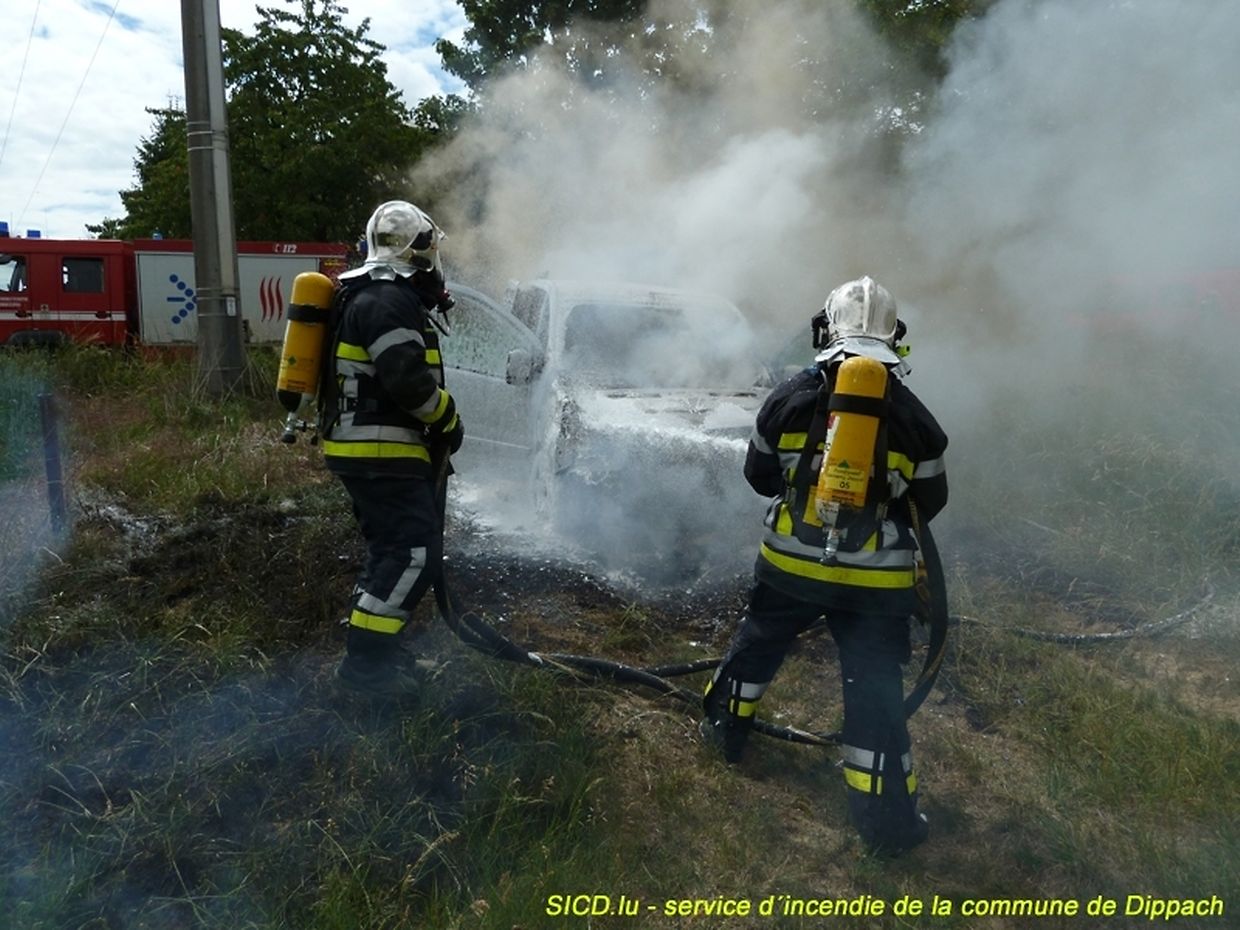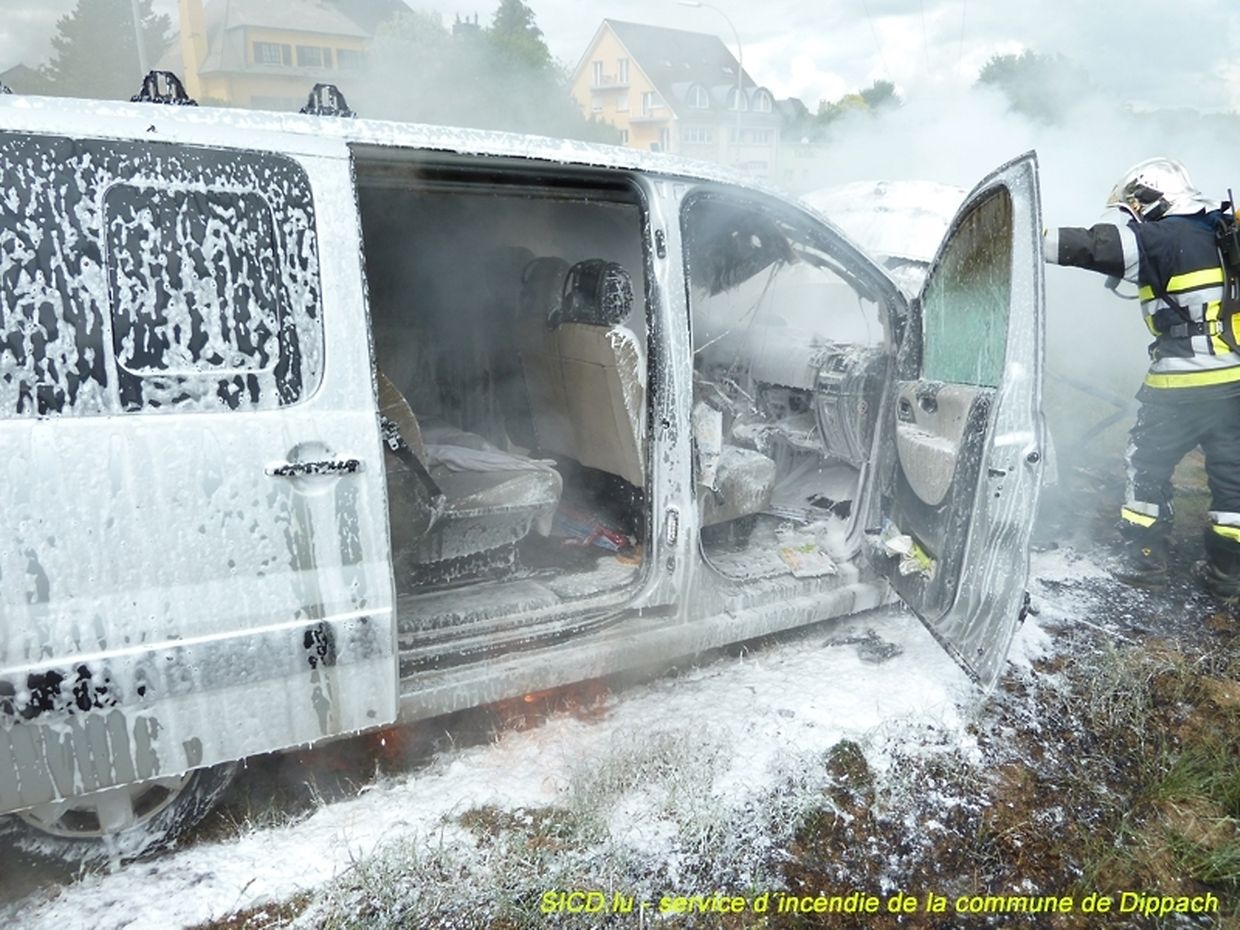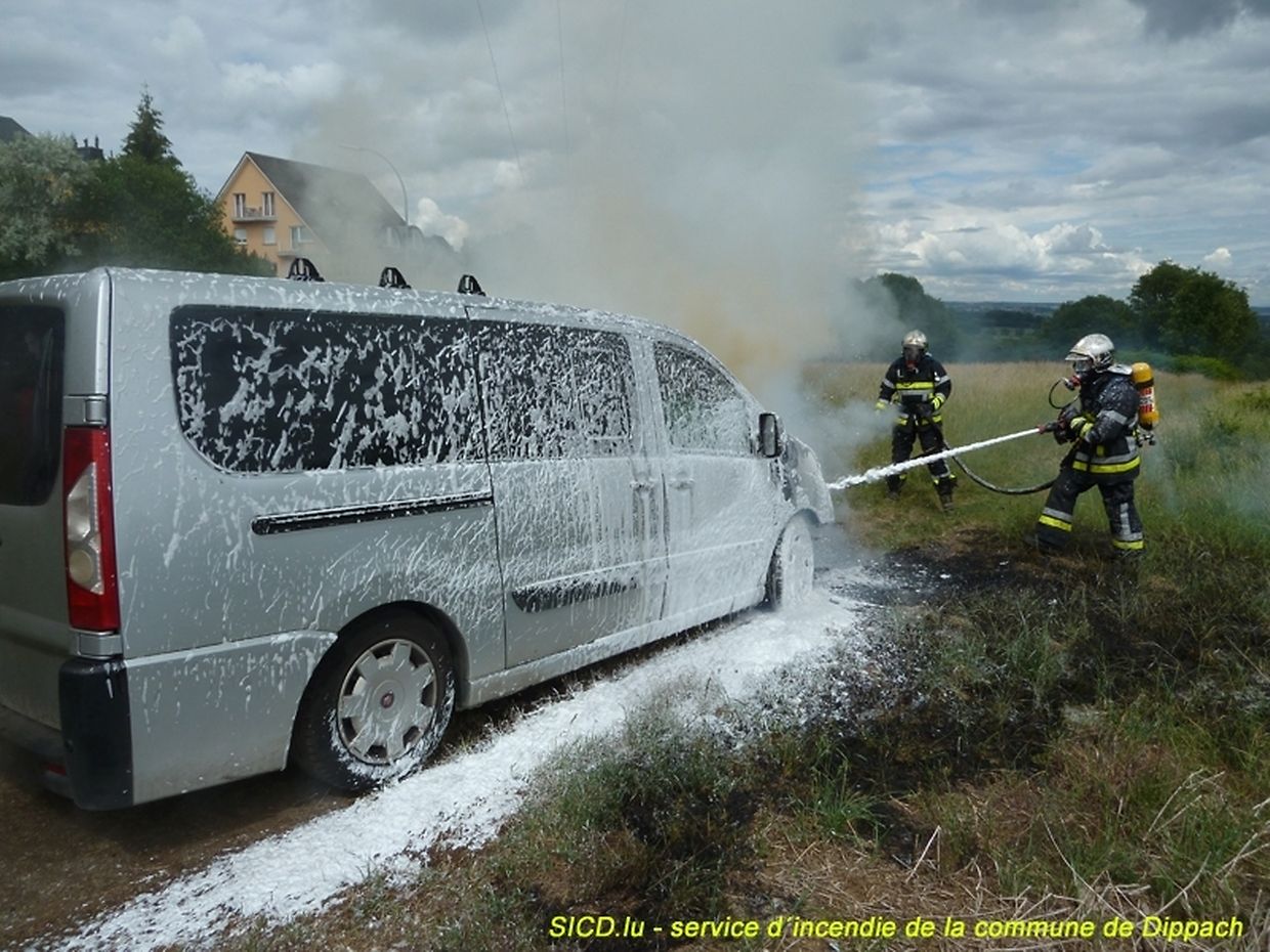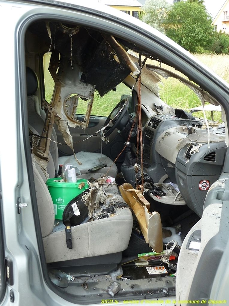 En Mann huet am Dippecherbierg geint 15:30hr festgestallt, dass aus dem Motoraum vu senger Camionnette Damp géif kommen. En ass stoen bliwwen an huet den Capot liicht opgemaach, fir ze kucken ob et géif brennen. Nodeems en kleng Flamen gesinn huet, ass hie mat der Camionnette bis an e Feldwee gefuer, huet d'Camionnette do an eng Wiss gestallt an se brennen gelooss.