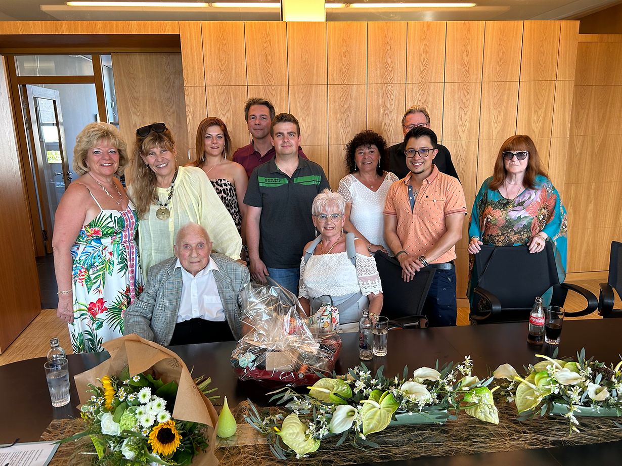 Pietro Luciani vient de fêter ses 90 ans en date du 29 juin 1933. Le conseil échevinal a pour coutume de marquer l’évènement par une réception personnelle et la remise d’un cadeau. Ce fut un très agréable après-midi. Bonne anniversaire Pietro Luciani !