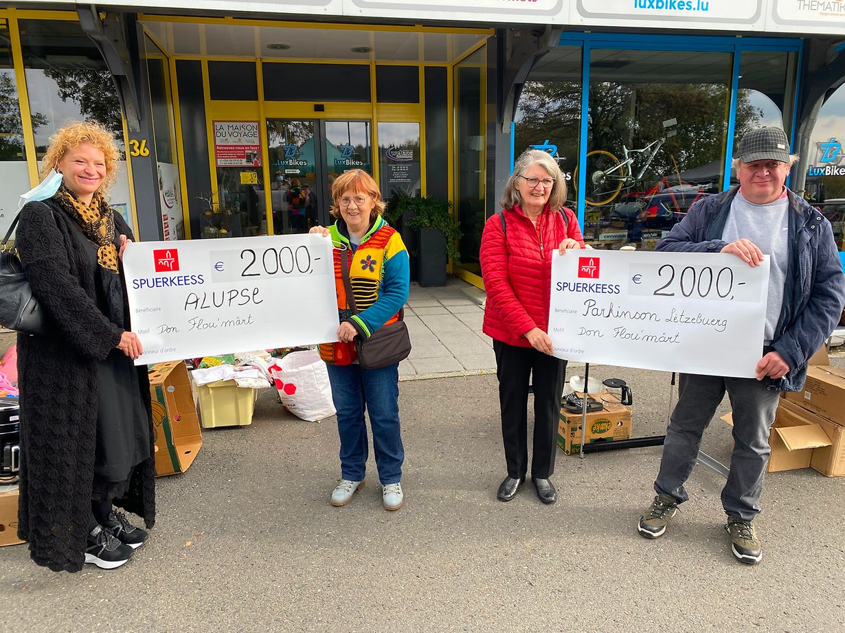 Dank desem groussen Asaz konnt d'Valeur vum Standgeld an Héicht vun insgesamt 4.000 € gespend ginn, an zwar an gläichen Deeler vu jeweils 2.000 € u folgend Associatiounen : ALUPSE a.s.b.l. vu Gasperech, souwéi PARKINSON LËTZEBURG a.s.b.l. vu Leideleng.
