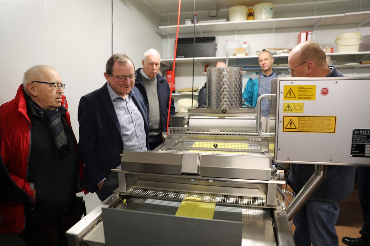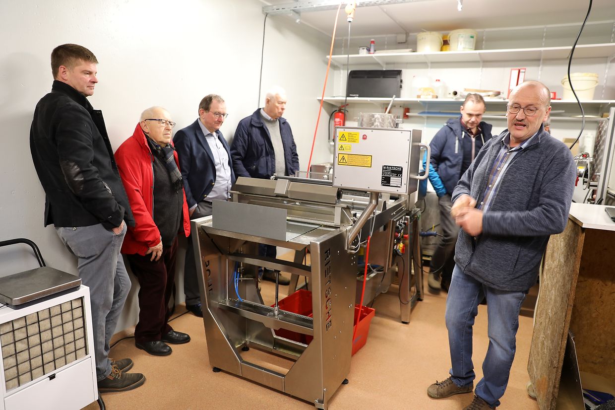 Die leistungsfähige Mittelwandgießanlage steht in Dondelingen im Anwesen des passionierten Bienenzüchters Georges Gidt, der zahlreiche technische Informationen gab und in einer praktischen Vorführung die Vorgehensweise erläuterte. Mit dieser nahezu vollautomatischen Maschine besteht die Möglichkeit, das Wachs eines jeden Kunden separat umzuarbeiten.