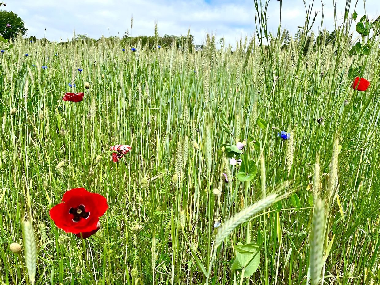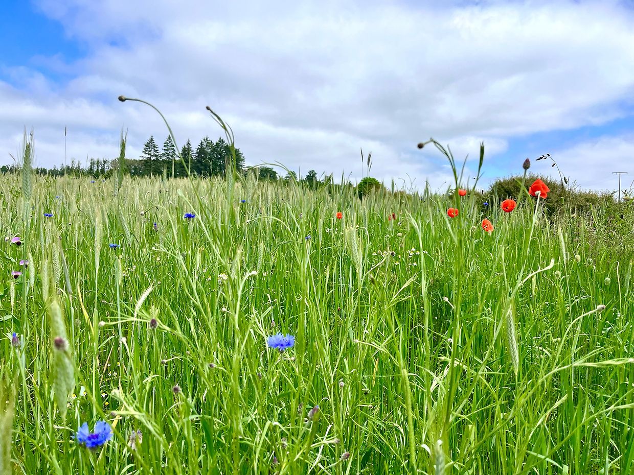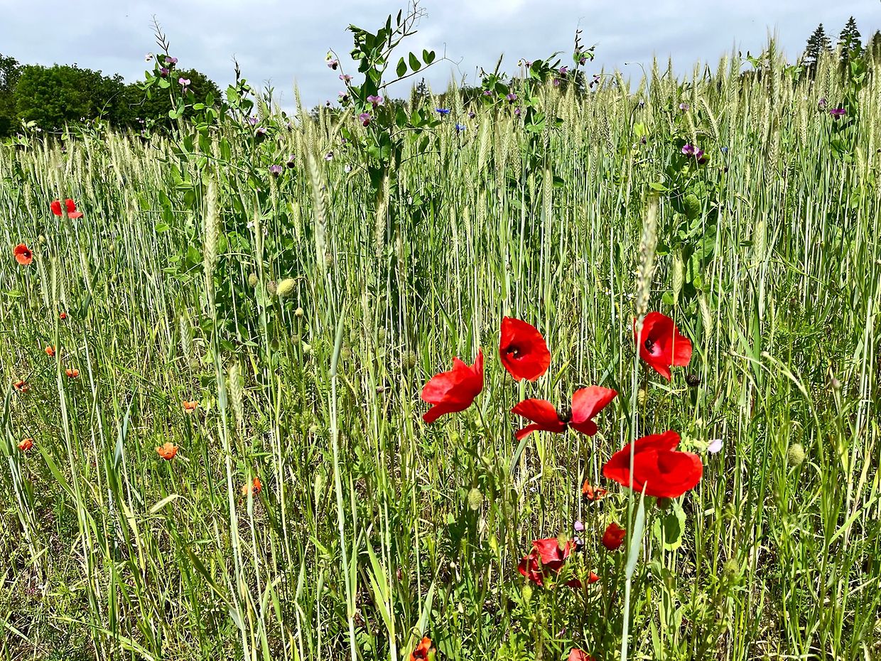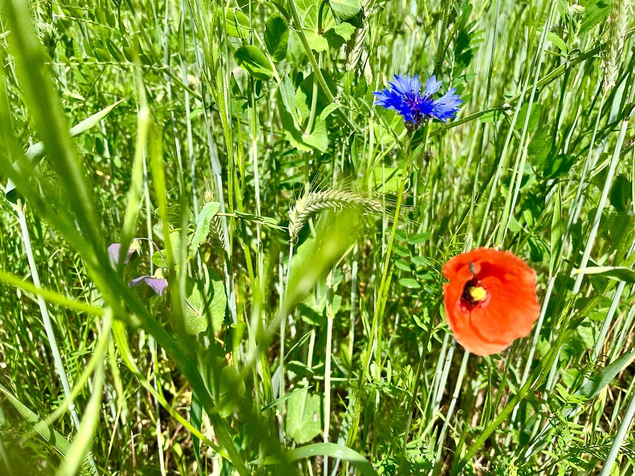 Herrliche Natur mit Klatschmohn und Kornblumen im Juni